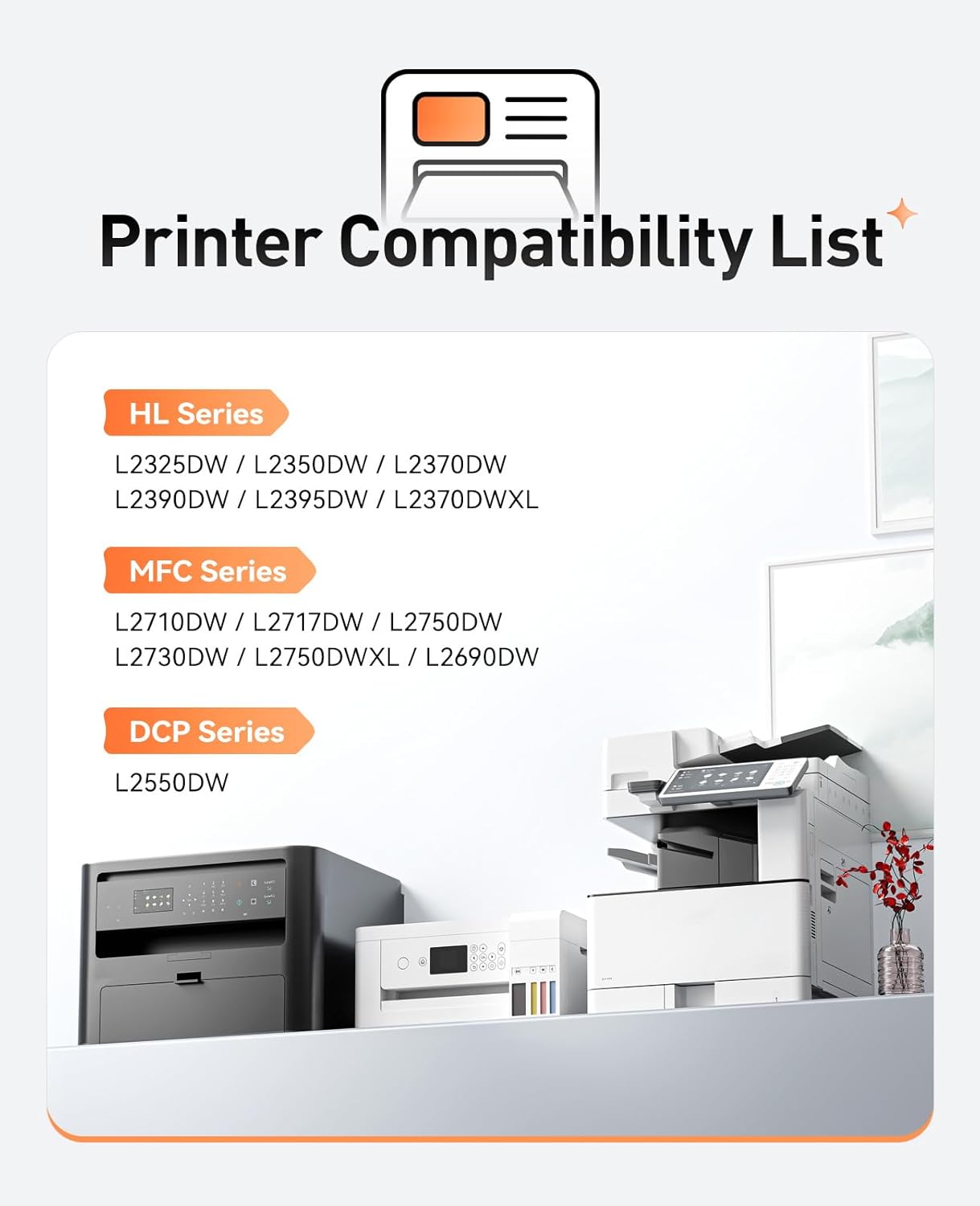 - Compatible Printers: Compatible with Brother HL-L2325DW HL-L2350DW HL-L2370DW HL-L2390DW HL-L2395DW HL-L2370DWXL DCP-L2550DW MFC-L2710DW MFC-L2717DW MFC-L2750DW MFC-L2730DW MFC-L2750DWXL MFC-L2690DW Laser Printer