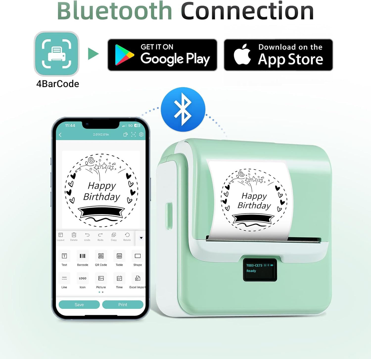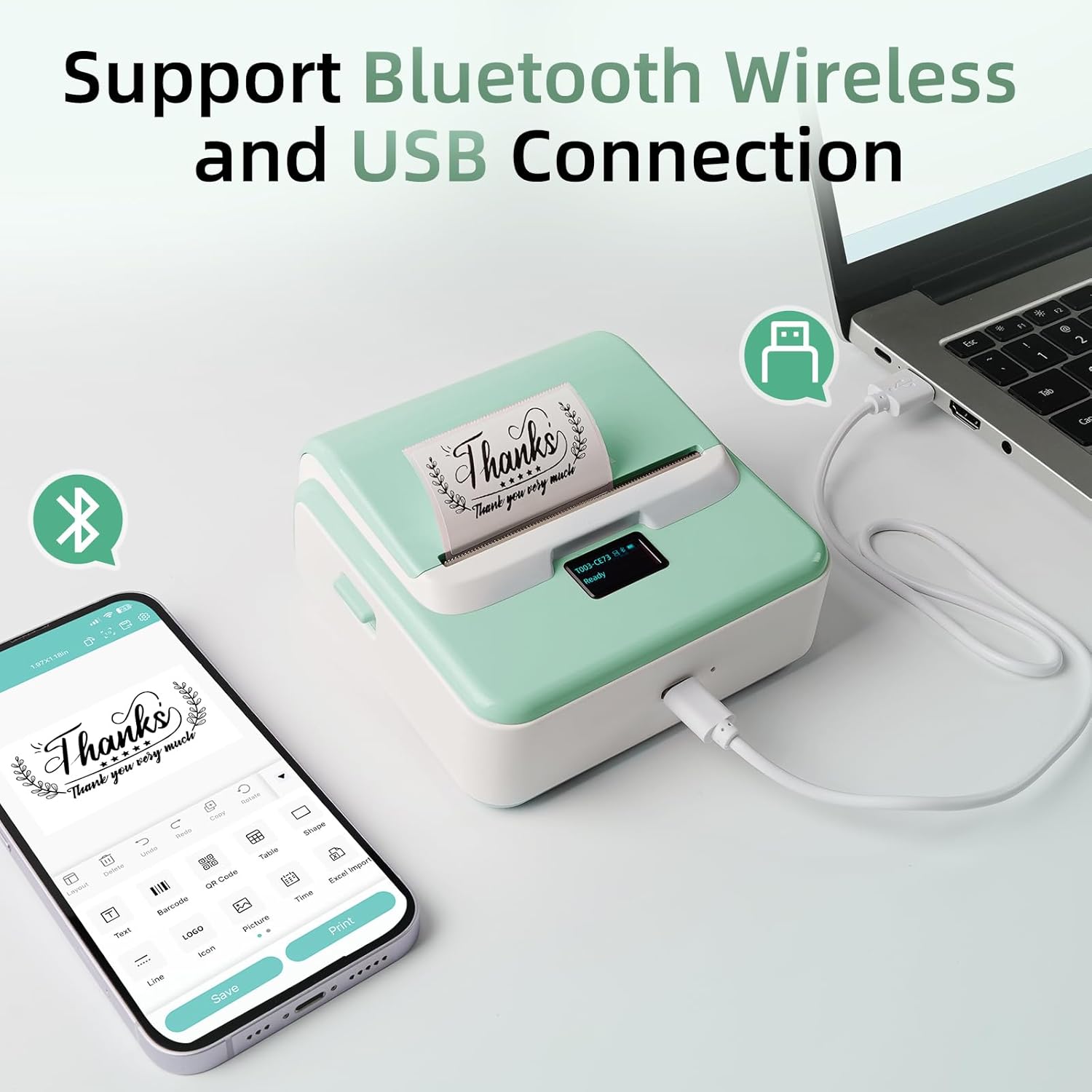 - Effortless Connectivity: ORGSTA T003 Bluetooth label maker is compatible with iOS, Android, and PC; Connect effortlessly to your phone via Bluetooth or to your computer using a USB cable; Label printer includes an easy-to-install driver compatible with Windows, Mac OS, Chrome OS and Linux; For iOS & Android phone, simply download the "4Barcode" app