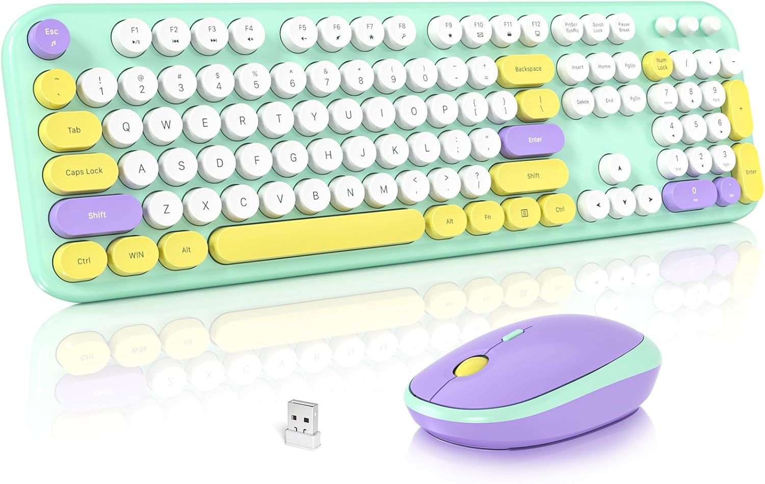 MOFII Wireless Keyboard and Mouse Combo, Cute Keyboard Full Size and Wireless Mouse, 2.4GHz Retro Typewriter Keyboard and Mouse Set for PC/Desktop/Laptop/Windows (Mint Green)