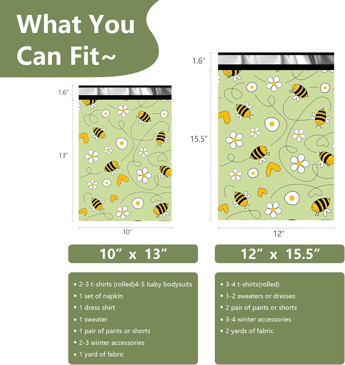 Poly Mailers 12x15.5 Inch 50 Pcs - Bee printed Shipping Bags, 2.4mil Thickness, Waterproof and Tear Resistant Mailing Envelopes, Self-Sealing Packaging Bags for Small Business