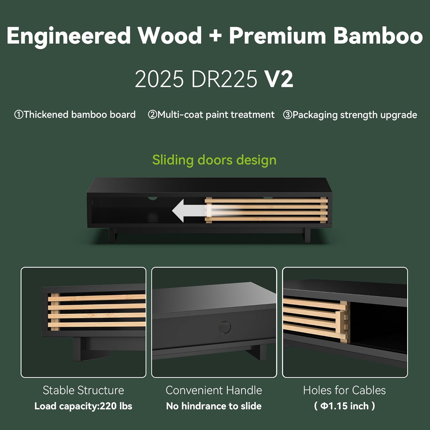- 【Premium Bamboo+Engineered Wood】Eco-friendly solid bamboo with natural grain, no chemical treatment. Engineered wood, multi-layer spray paint on the surface.Moisture-resistant & warp-proof, holds up to 220lbs