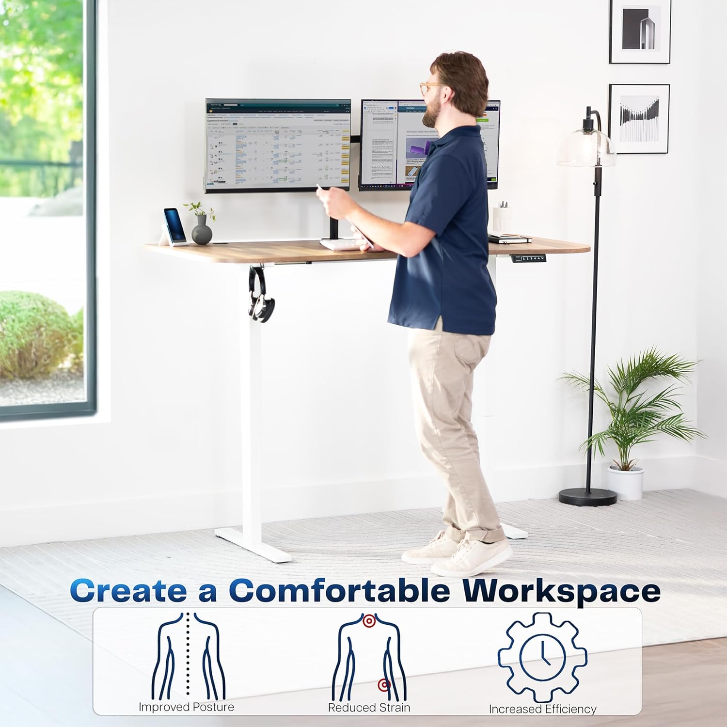 - Strong Desk Frame Support: With all-steel construction, the desk frame supports up to 176 lbs with maximum stability and sturdiness