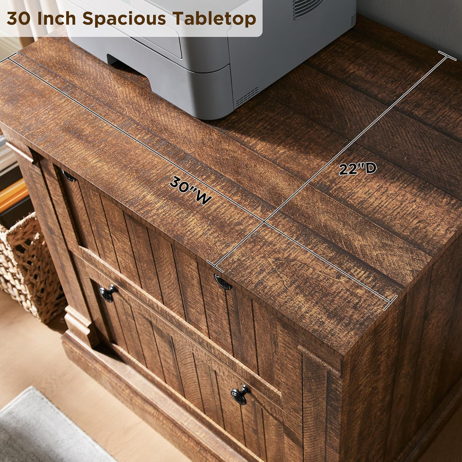 - Special Feature : 2 Big File Drawers, 30-inch Countertop, Farmhouse, Hanger Rods, Wood Rustic