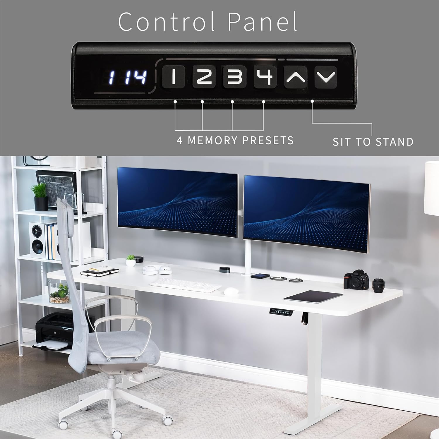 - Memory Controller: The easy-to-use push-button controller features 4 memory presets to save your desired heights. With a simple click of a button, you can say goodbye to long hours of sitting and end the day feeling energized and refreshed
