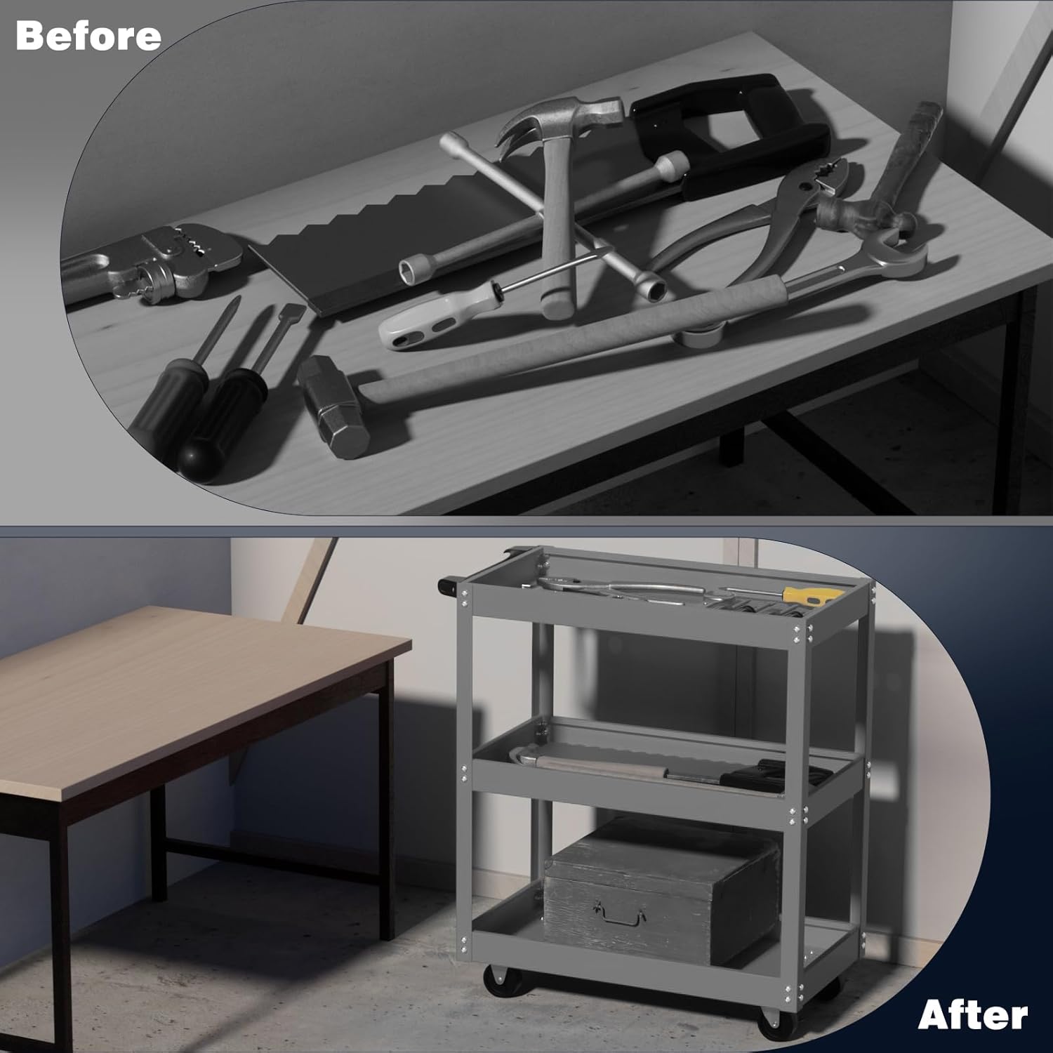 - [Ample Storage Space] Designed with three tiers, this heavy duty tool cart offers ample storage space to accommodate all your tools and supplies. Each tier features a spacious tray, allowing you to organize your tools and keep them easily accessible