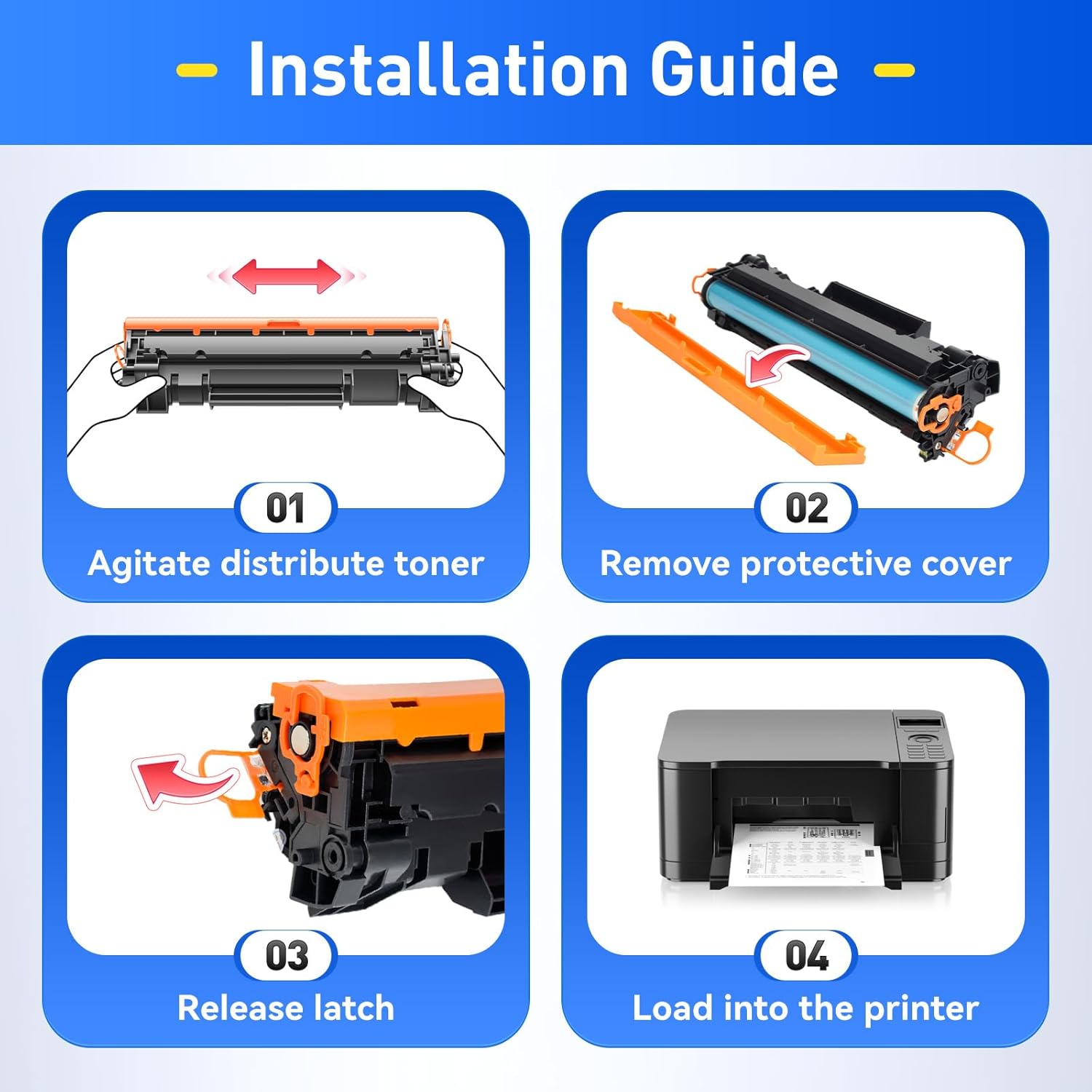 - The latest chip version: The JCTONER toner cartridges are equipped with the latest version of built-in chips, ensuring perfect compatibility between each toner cartridge and the printer. This enables you to print efficiently while maintaining stability and reliability, making installation convenient without the need for manual adjustments. All JCTONER toner cartridges have undergone strict quality testing and have obtained ISO9001 certification. High-quality toner cartridges can meet the demand for high printing volume. The fine toner ensures clear and stain-free printing results and extends the lifespan of the printer. You can purchase with confidence.