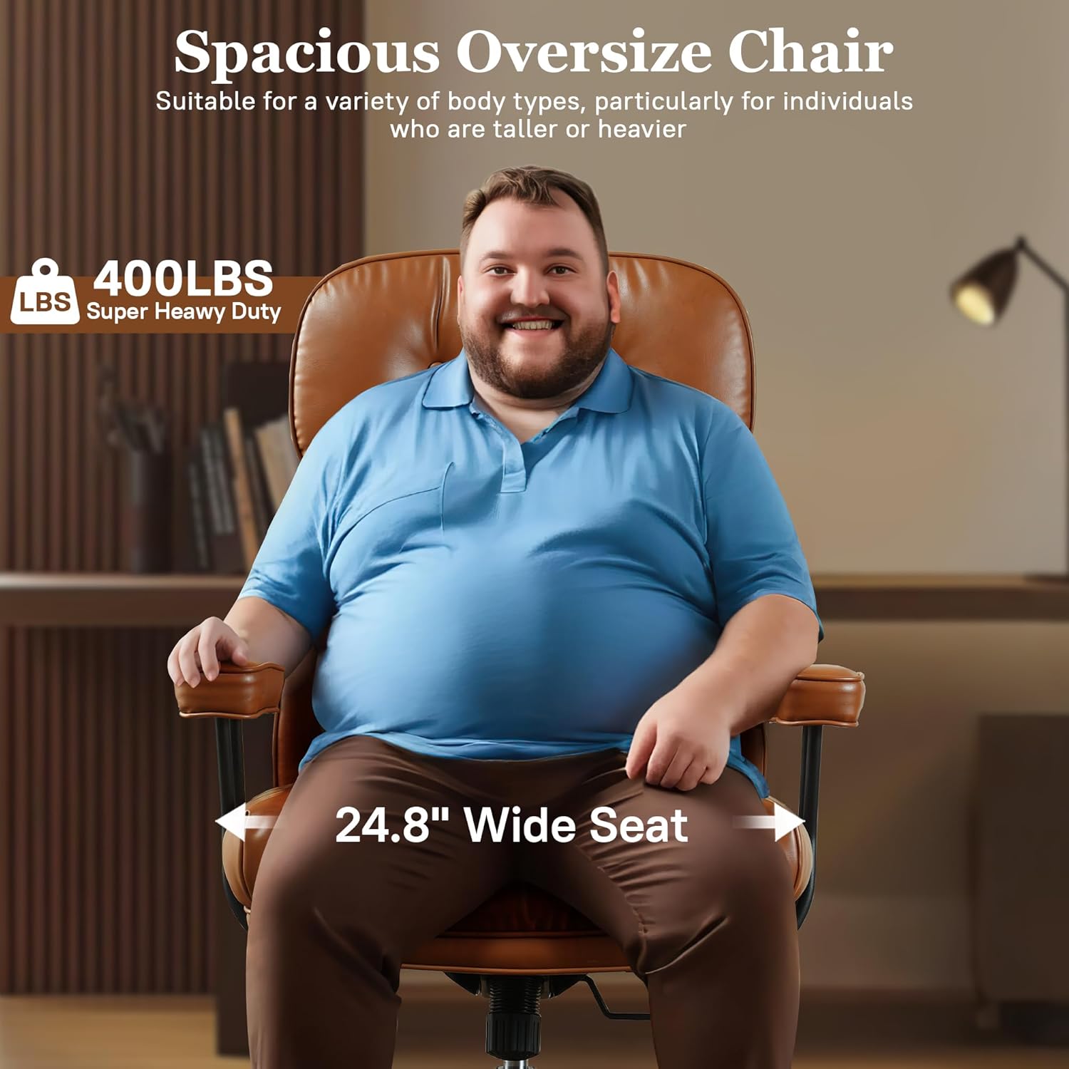 - Go Big or Go Home—Upgrade your day with our MCM XL Office Chair! Designed for the big and tall, this chair supports up to 400 lbs. Wrapped in faux leather, it's not just a seat but a comfort experience. The expansive 20"x24.5" seat cushion with 6.3" thickness ensures a sturdy, perfect fit. It's a statement of comfort and support for larger frames