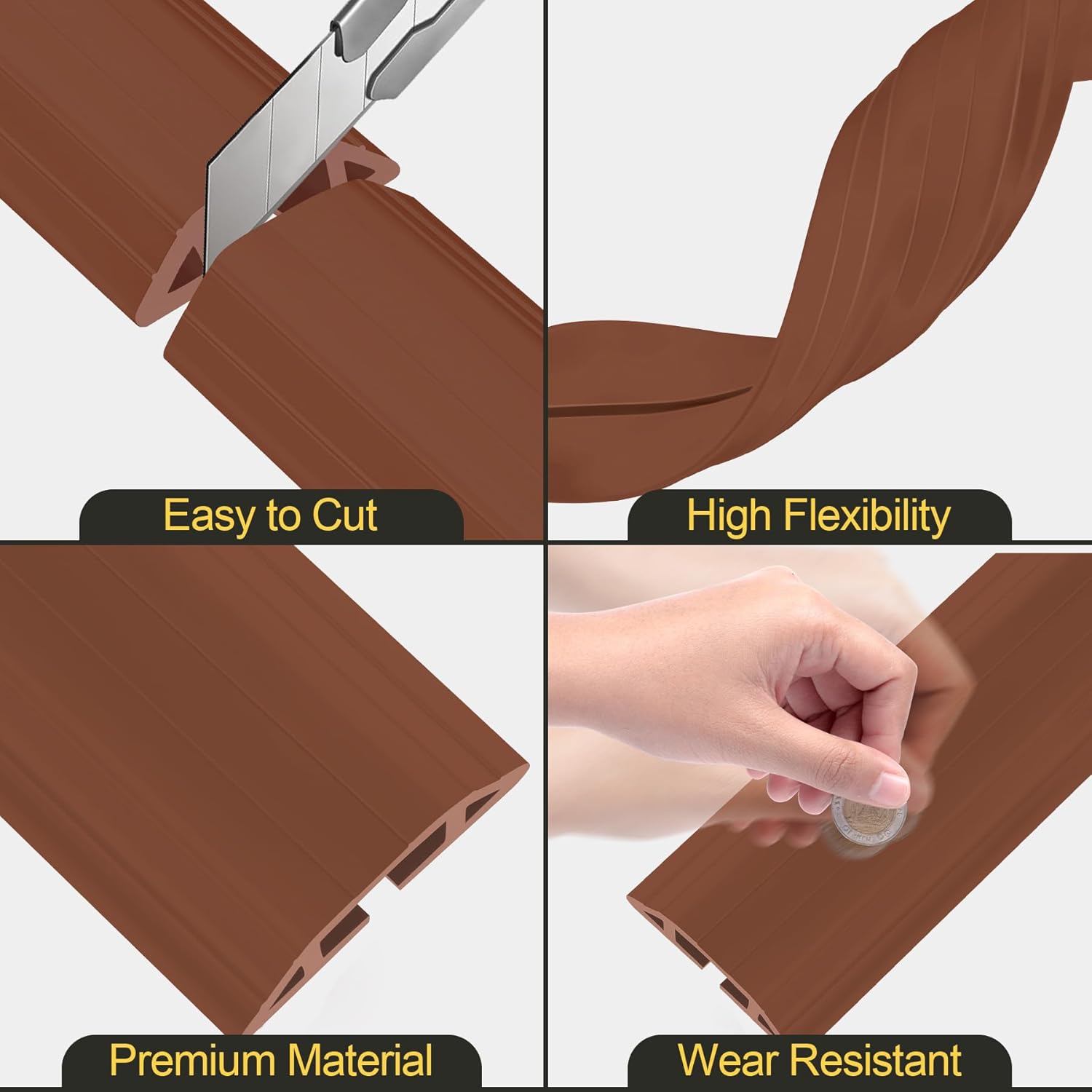 - 【Premium Material】Floor cable cover is made of highly flexible PVC material. With strong toughness, floor cord cover is wear and scratch resistant. Cord cover for wires on floor is easy to unroll, you can cut to any length with a knife or strong scissors. It is thick enough and does not bend easily, suitable for your long term use
