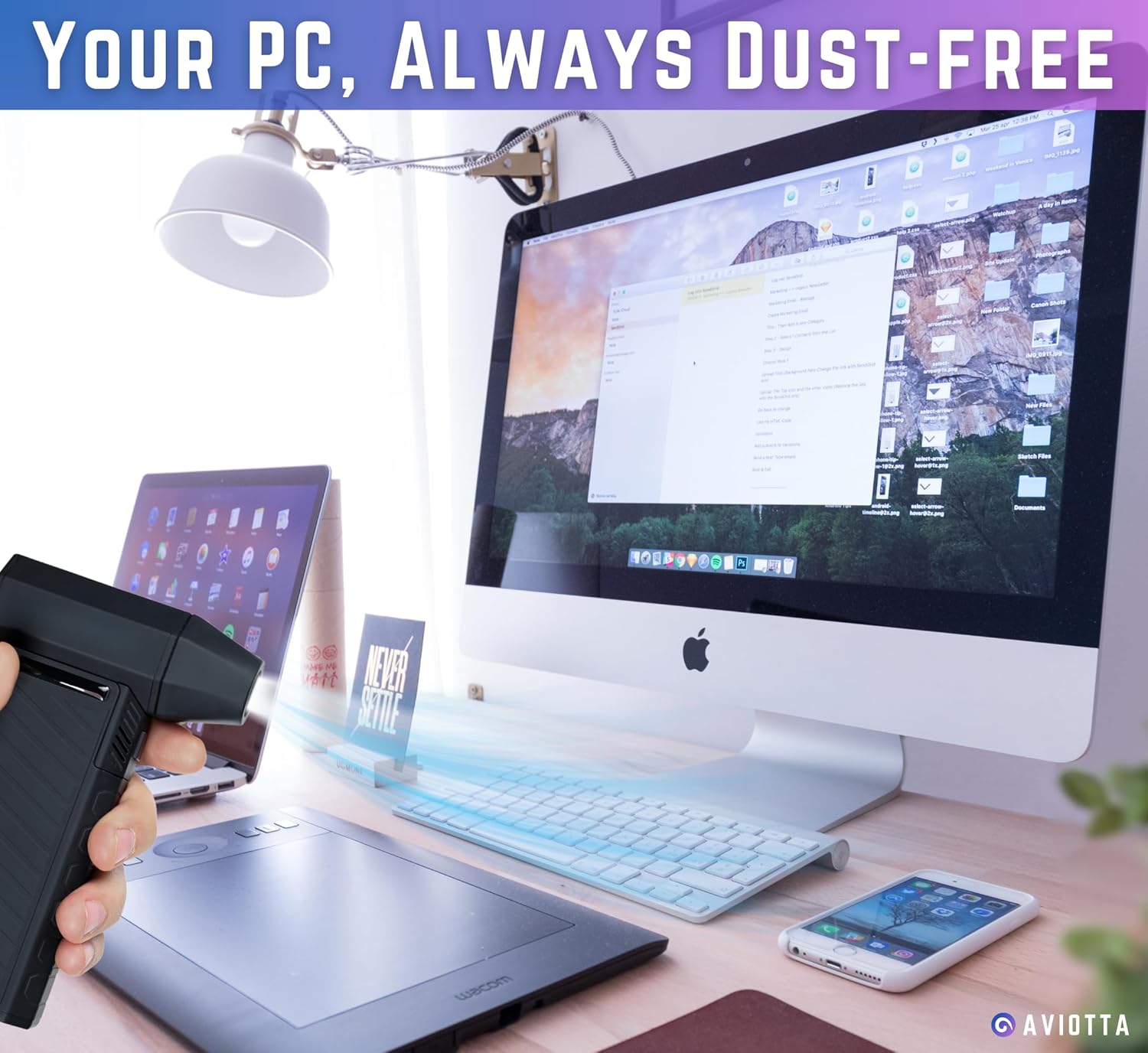 - [ CLEAN EFFORTLESSLY ] - Power & Luxury of Aviotta Air Duster. Thanks To Its Special Coating, Upgraded Motor Technology & Large Capacity Battery, This Compressed Air Duster Rechargeable Is The One You Need To Transform Your Cleaning & Give Second Life To Your Surroundings.