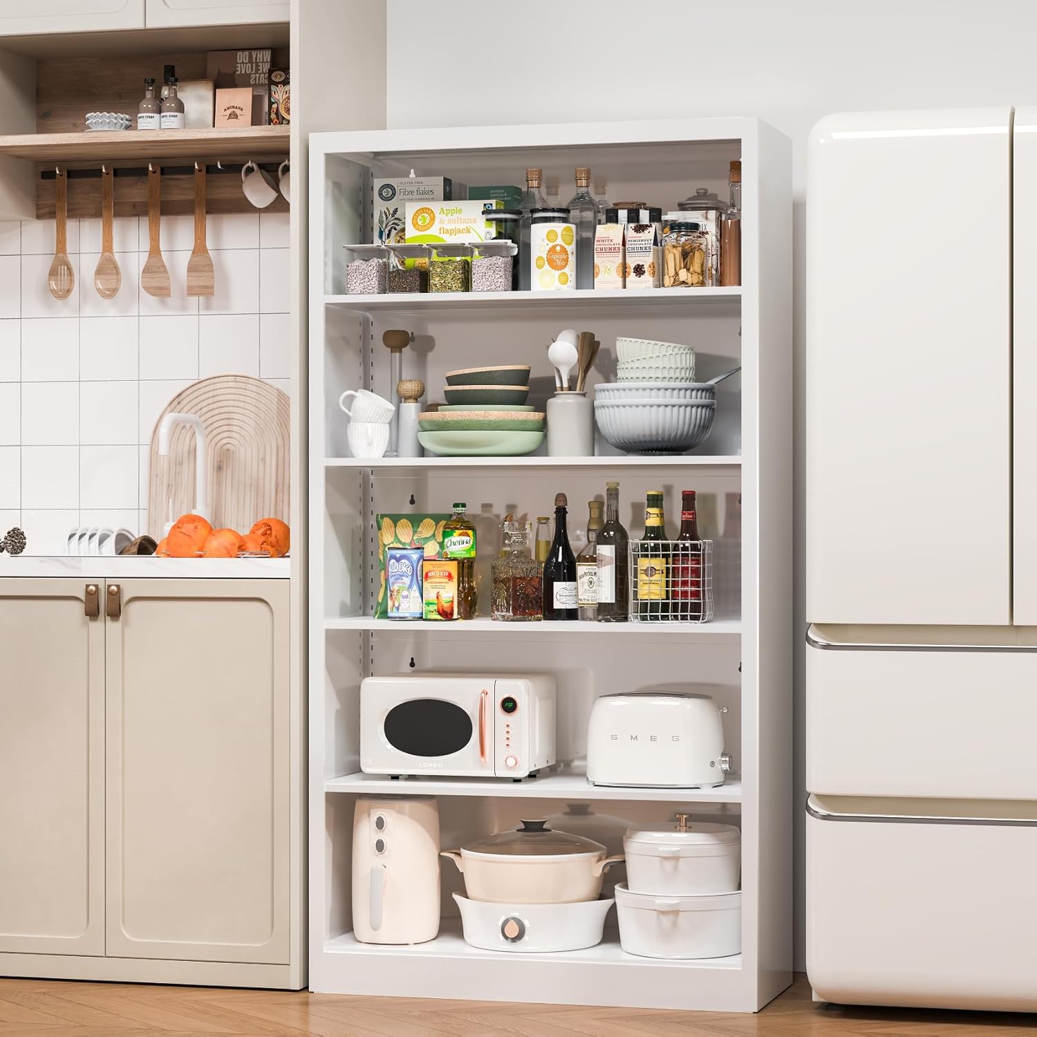 - Versatile Modern Hardback Books Bookshelf: High-quality, stylish, and easy-to-install metal white bookshelf, perfect for living rooms, bedrooms, offices, libraries, classrooms, and reception areas. 5 tier bookshelf offers ample storage and display space