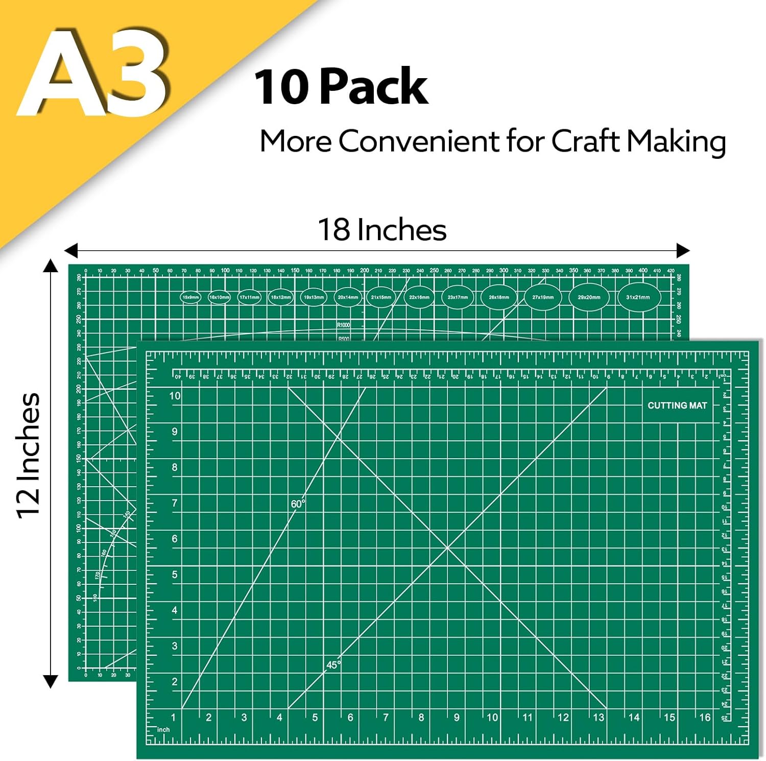 - Double Sided Use: Maximize value with our double sided cutting mat. Both sides are usable and feature inch, metric, and angle guides for precise measurements. It is suitable for quilting, sewing, and crafting