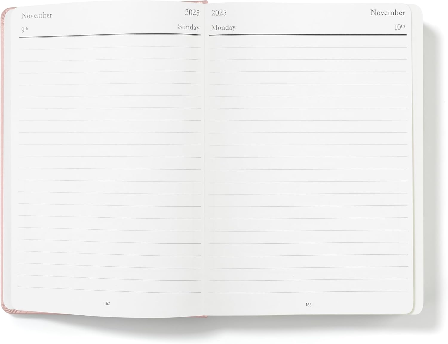 - Spacious Daily Pages: Detailed daily plans with full-page entries.