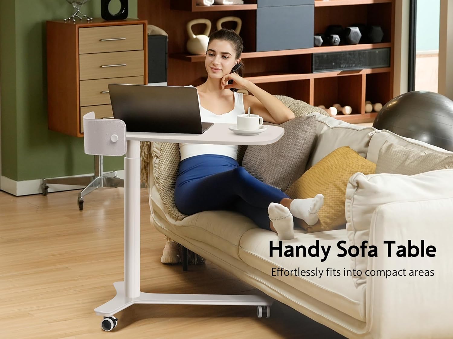 - Smooth Pneumatic Lift System: The mobile desk built-in gas spring offers smooth one-hand height adjustment from 28" to 43". No need to bend down or use force to adjust the height. With pneumatic lifting, it's easy to adjust with one hand.