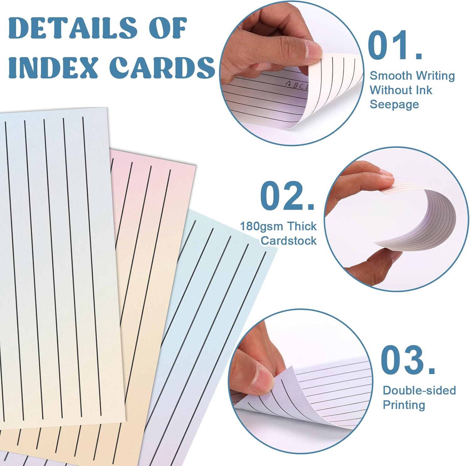 100 Pack Ruled Index Cards 3x5 Gradient Colored Index Cards Heavy Weight Note Cards 180gsm Flashcards Double Sided Notecards Lined Recipe Cards for Studying Drawing