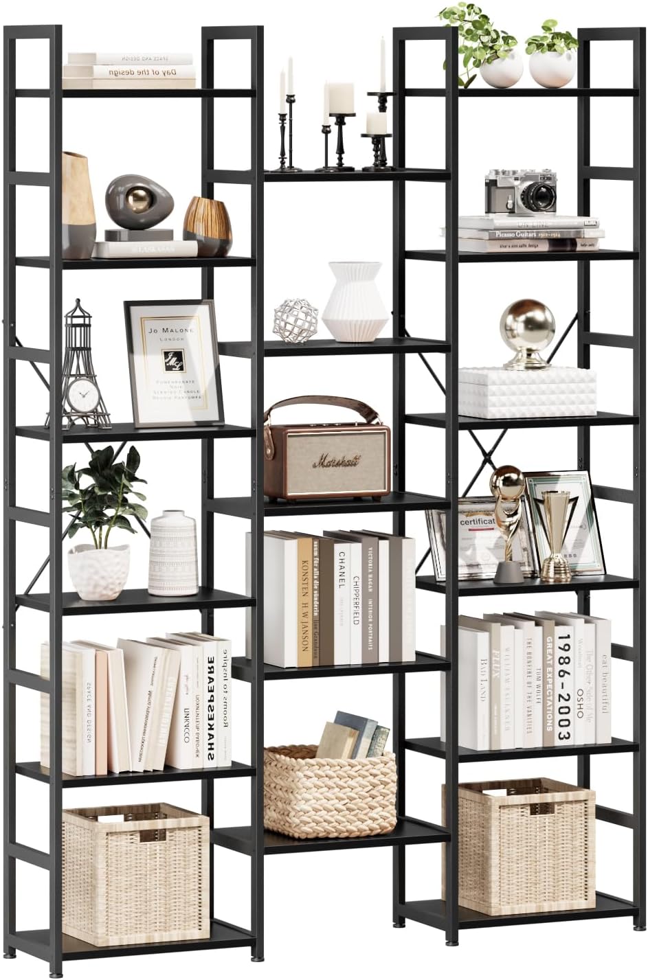 NUMENN Triple Column 6 Tier Bookshelf, Bookcase with 17 Open Display Shelves, Adjustable Rustic Industrial Style Book Shelves, Modern Bookshelves for Bedroom, Living Room and Home Office, Black