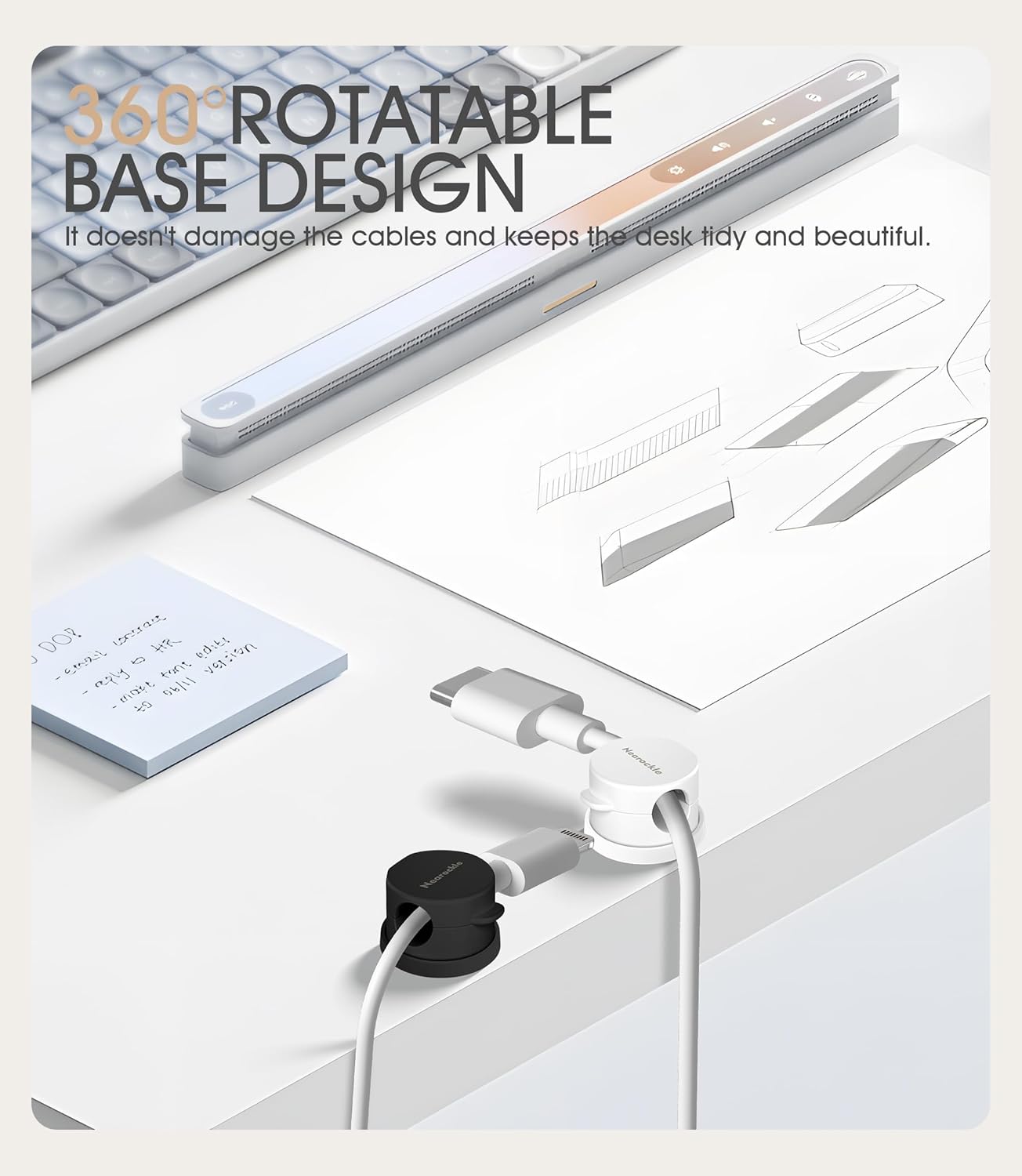 - 【360°Rotatable Base Design】Designed to protect your cables and make them easy to use! Each cable clip holds one cable, and you can rotate the base to stretch the cable in any direction. The cable will not bend and will not be damaged during long-term use. It will look like new