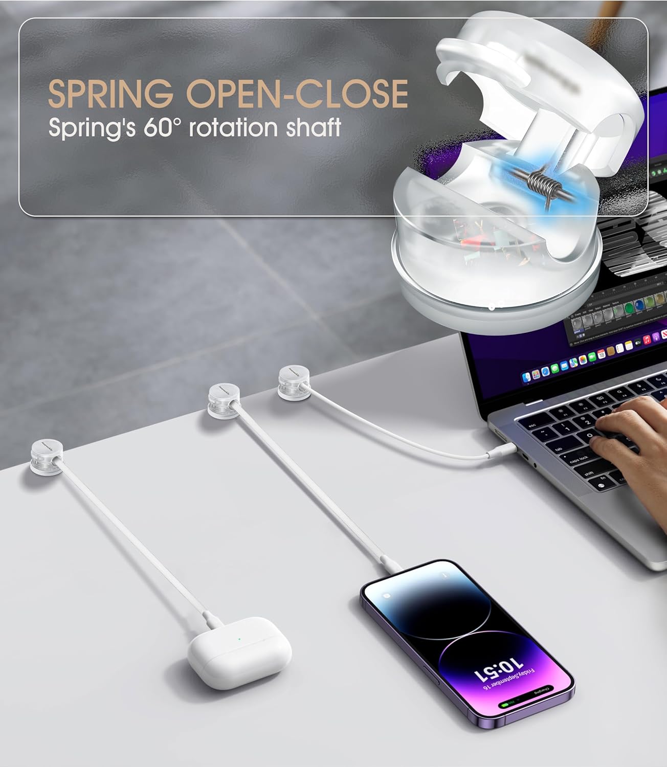 - 【Spring Design -1s Quick Lock Wire】Our cable clips adopt a spring opening and closing design, allowing you to quickly and safely place and remove mobile phone charging cables, HDMI cables, and household wires with just one hand