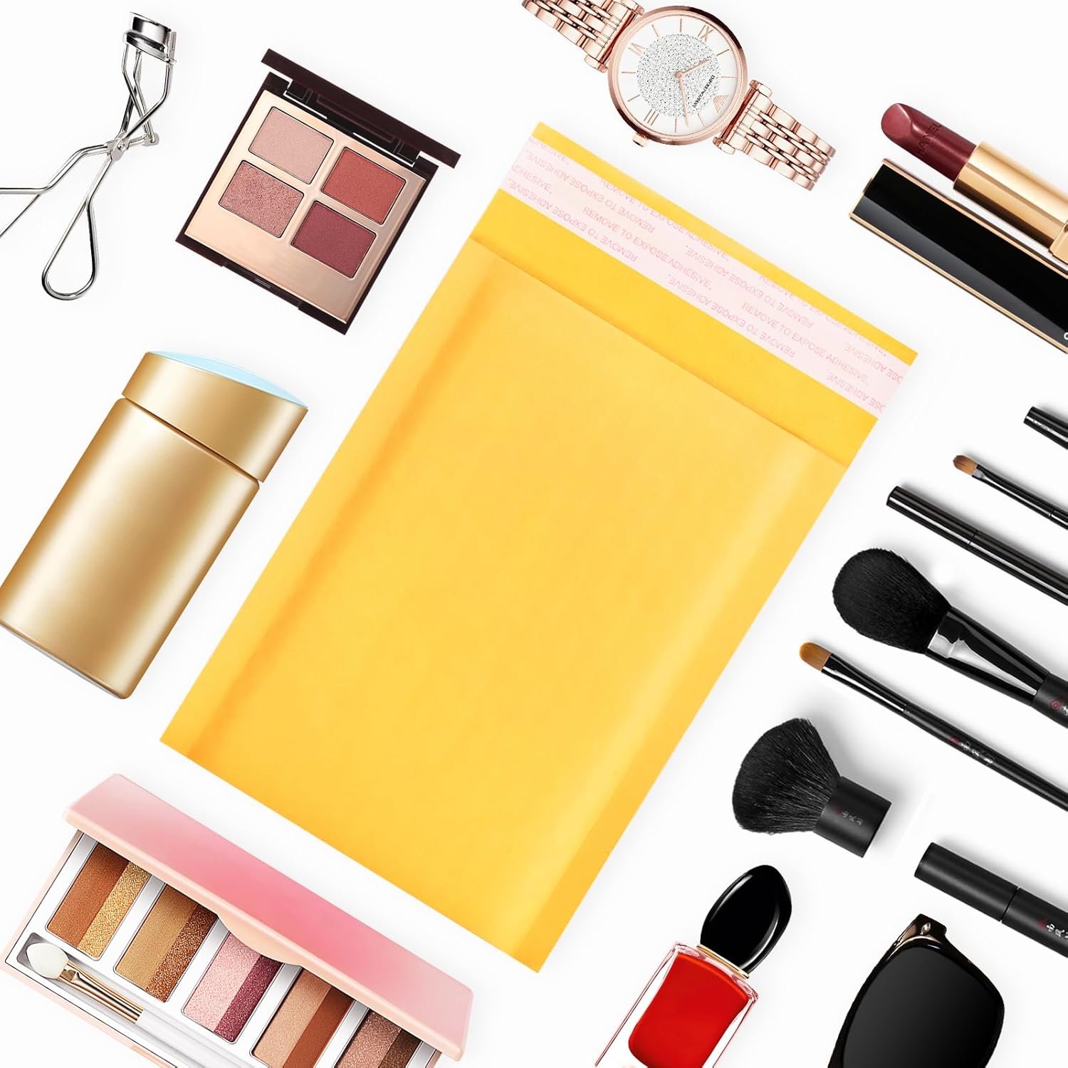 Kraft Bubble Mailers 4x7inch 50Pack Yellow Self-Seal Padded Envelopes Bubble Opaque Padded Mailers Shipping Bags for Small Businesses to Package and Mail Jewelry Cosmetics, Electronic Products, Cards