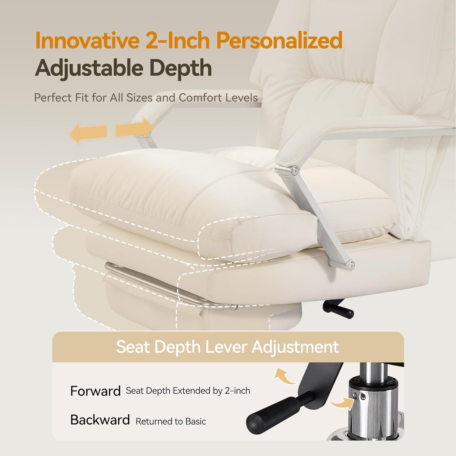Reclining Office Chair with Footrest - 25.6" Wide Seat & Adjustable Seat Depth, Big and Tall High Back Leather Executive Home Office Desk Chair 400lbs, Cream
