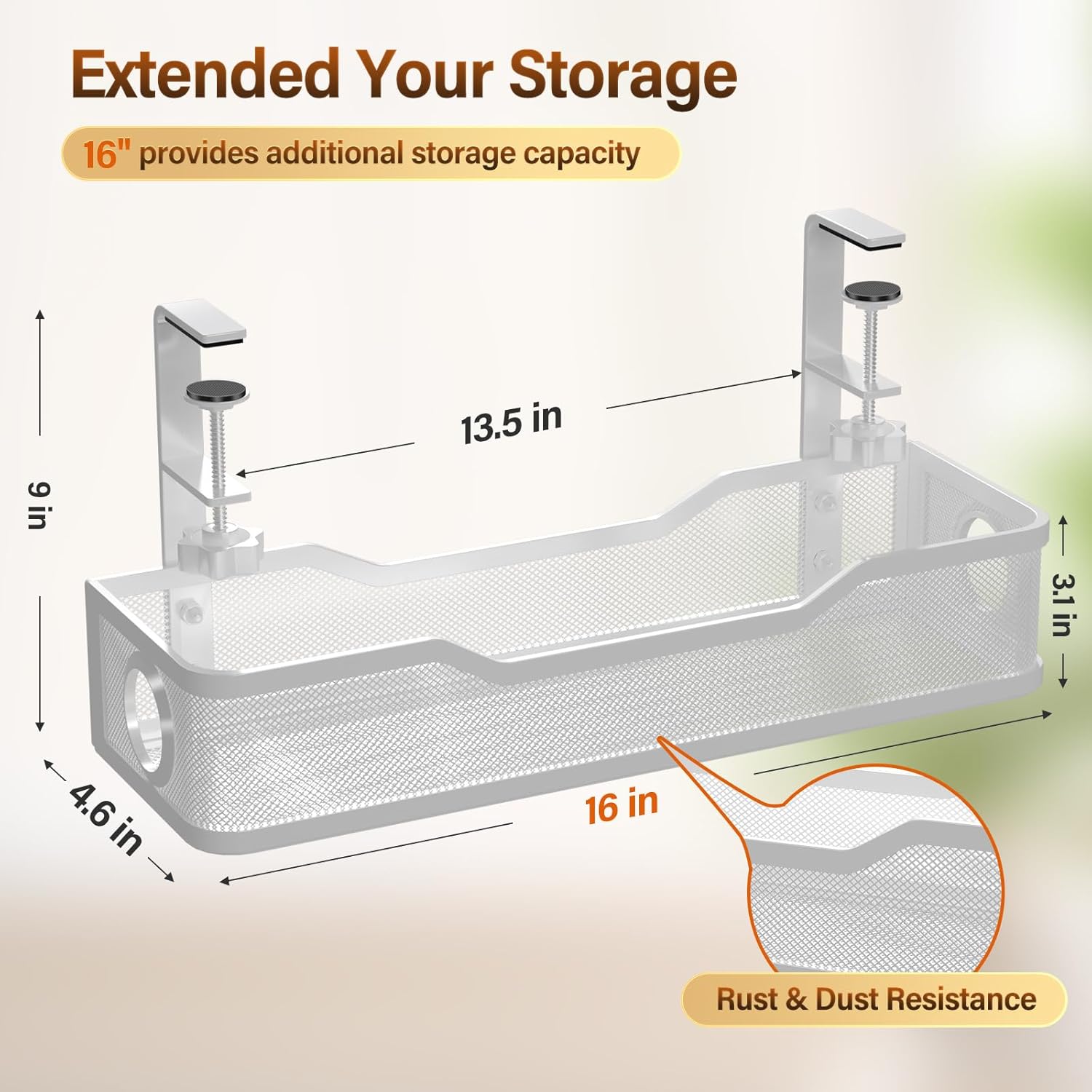 - Extended Your Storage - The 16 inch under desk cable management offers more storage space than any other product, accommodating various computer cables and maximizing under-desk space, keeping your cables no more mess. This wire management solution can support up to 15 pounds, making it the perfect cable organizer for your desk and helping you maintain a tidy workspace.