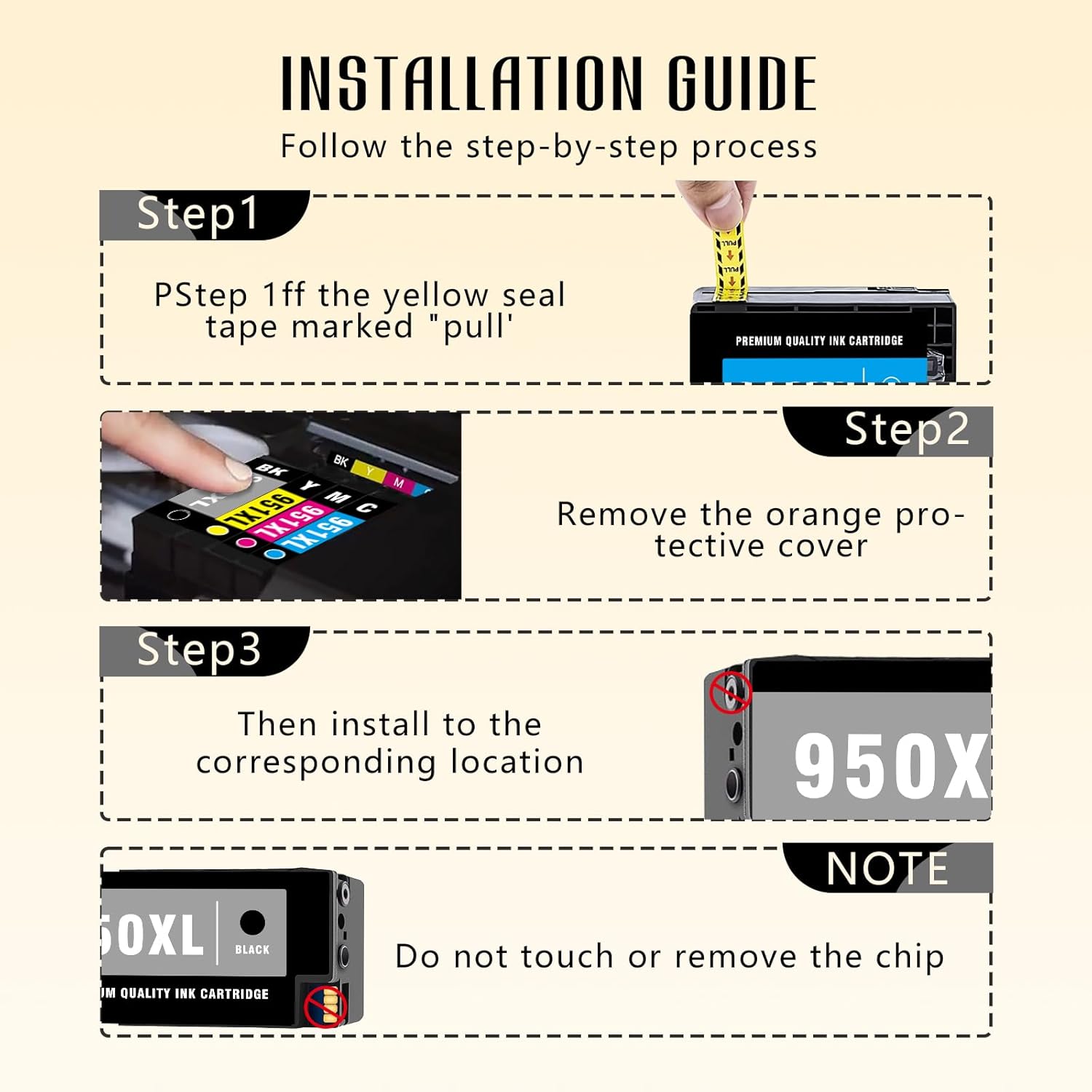 - 950XL 951XL ink cartridges combo pack latest upgraded chips: J2INK 950xl 951xl ink cartridges combo for HP 951 Ink Cartridges Combo Pack equipped with latest intelligent chips, undergoes strict quality control, makes sure quick and easy installation and instant recognization