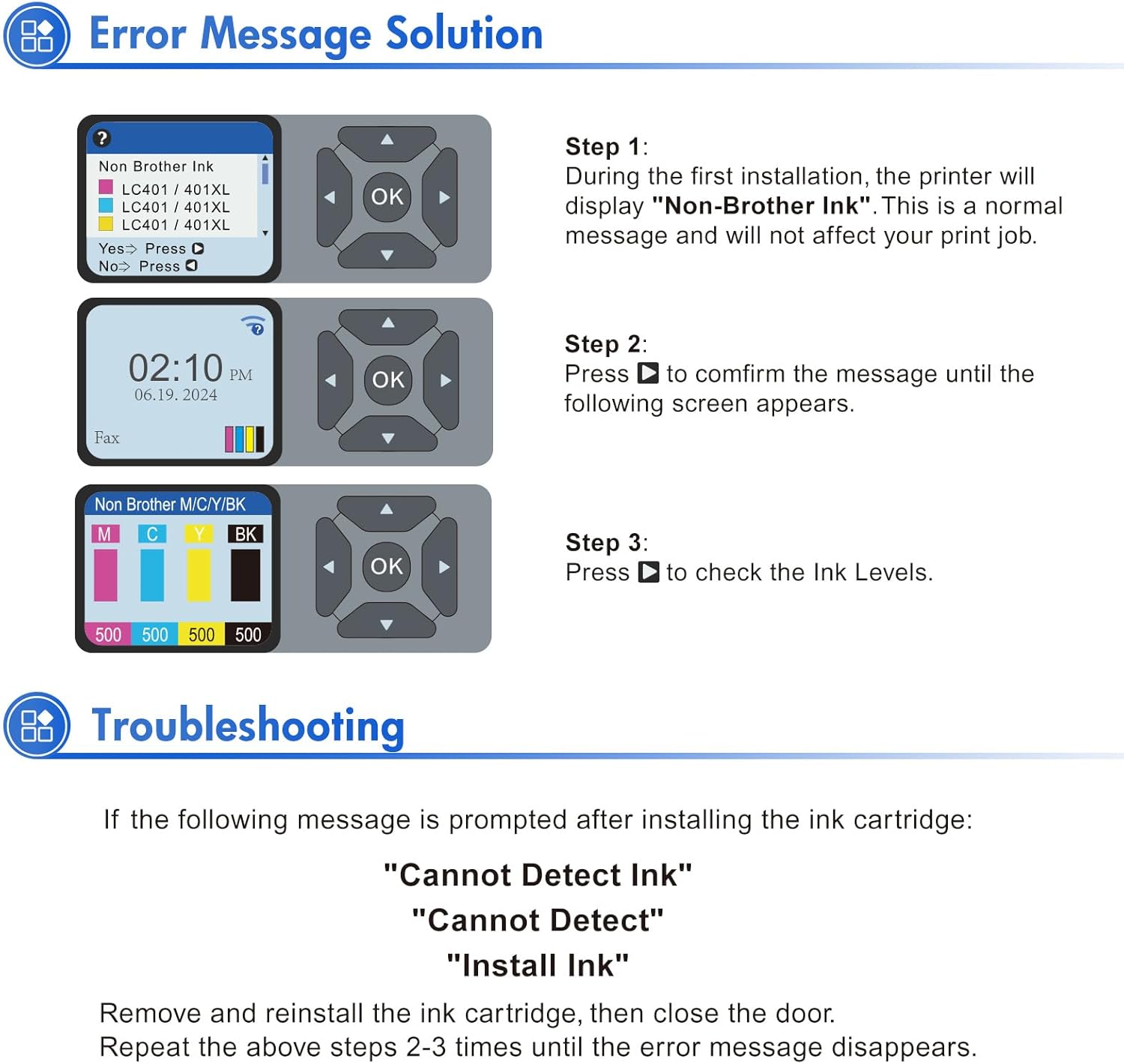 - Product Model: 4 Pack LC401 LC401XL ink cartridges for Brother Printer Black Cyan Magenta Yellow