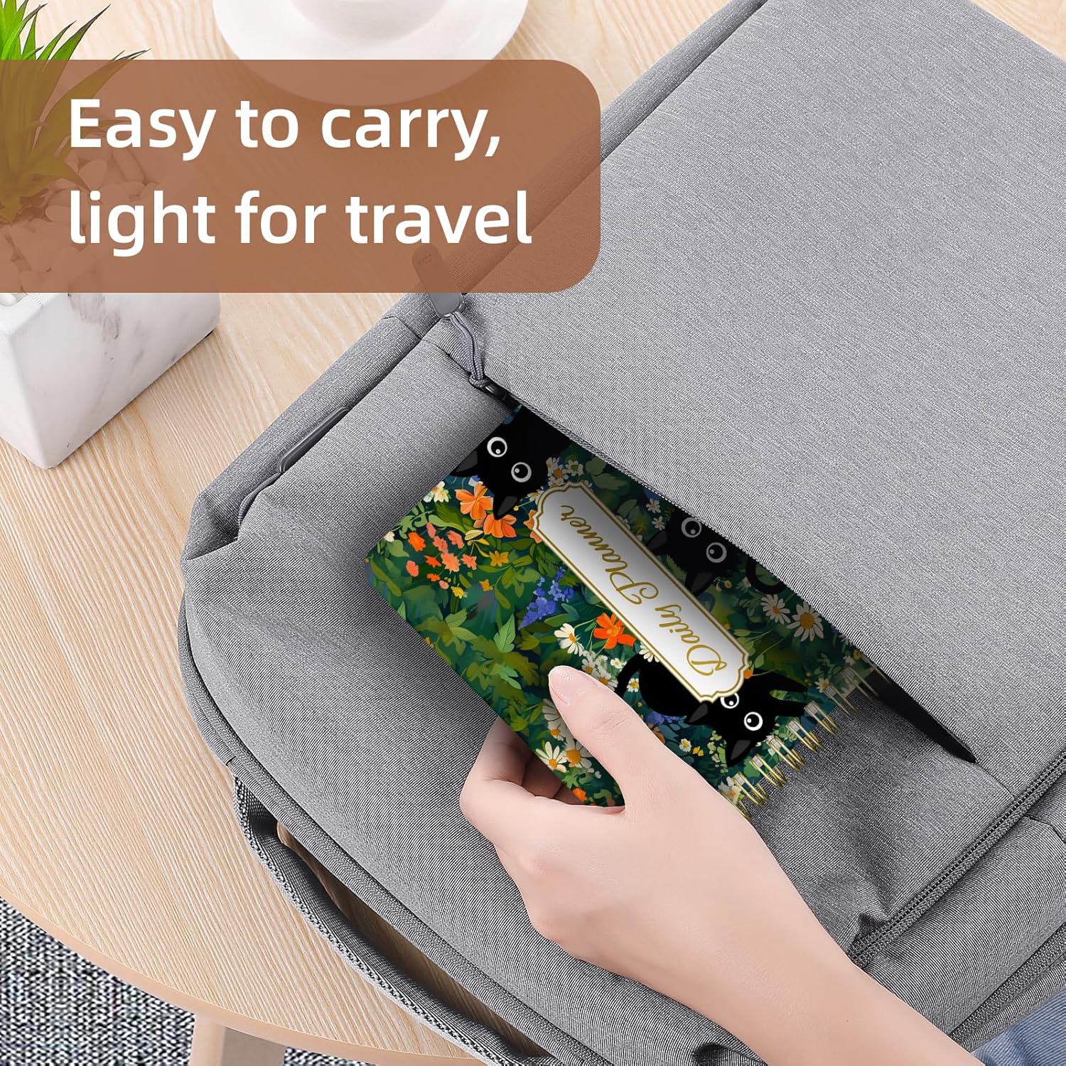 Undated Daily Planner - Spiral Notebook 80 Days One Day Per Page, Hourly Schedule, To-Do List, Notes, Everyday Planning Task, A5 Hardcover Journal Organizer Book Women Cute, Cat Garden