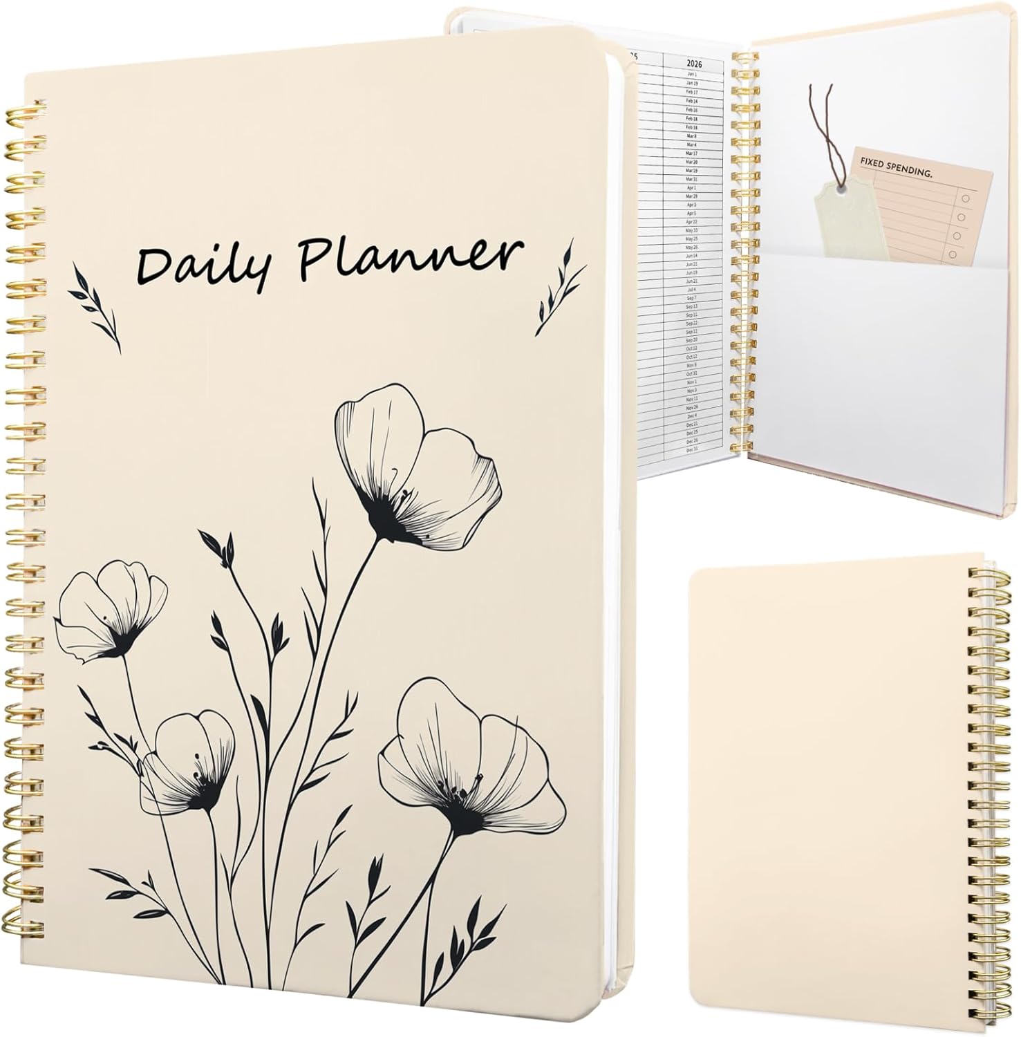 Stanoha Undated Daily Planner - Spiral Notebook 80 Days One Day Per Page, Hourly Schedule, To-Do List, Notes, Everyday Planning Task, A5 Hardcover Journal Organizer Book Women Cute, White Flower