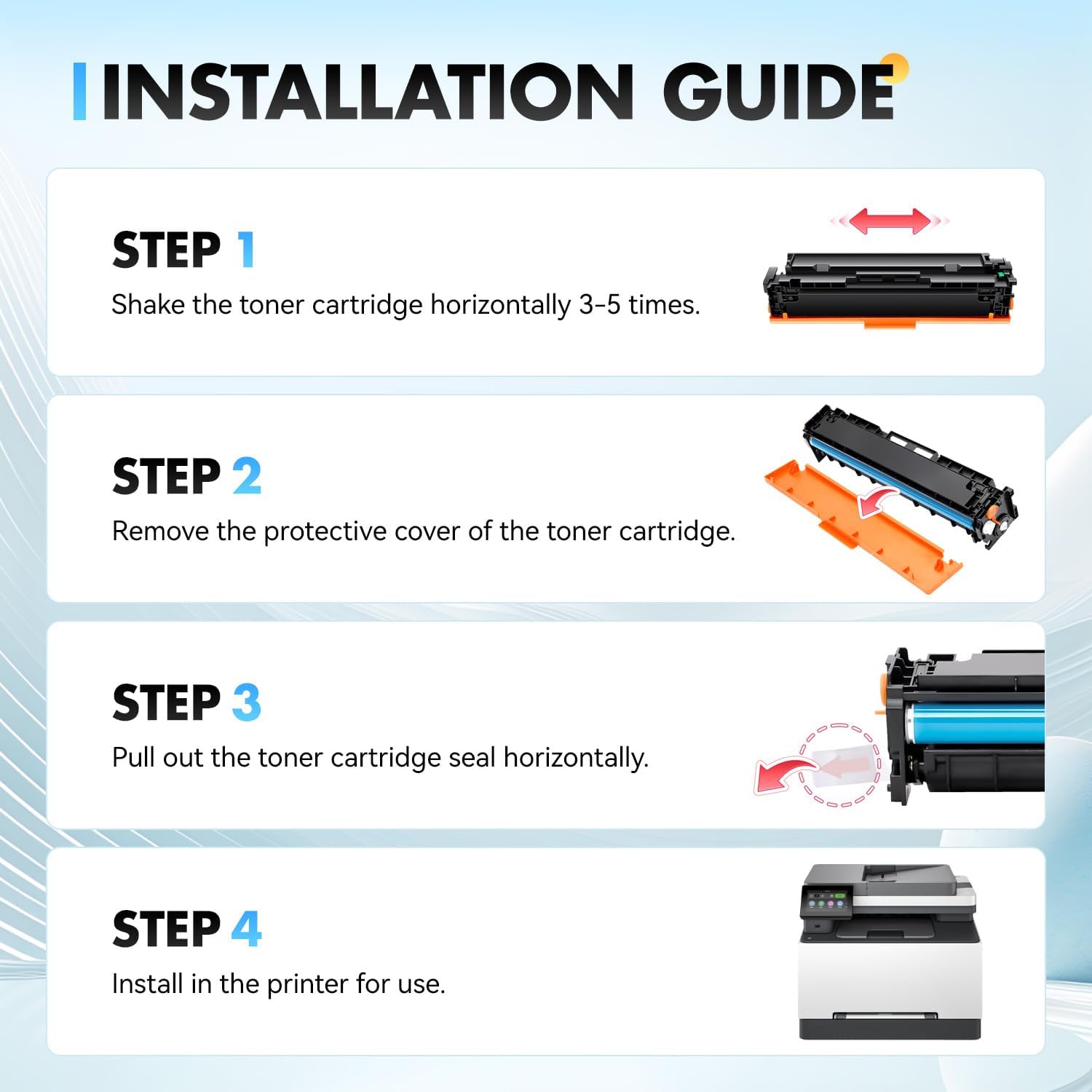 - Convenient Installation: Our 218X 218A toner cartridge is designed for easy installation, allowing users to effortlessly replace the cartridge and resume printing without any hassle.With Latest Chips: Our toner cartridge 218X is equipped with the latest upgraded chips to ensure perfect compatibility with printers and excellent print quality, you can enjoy worry-free and efficient printing