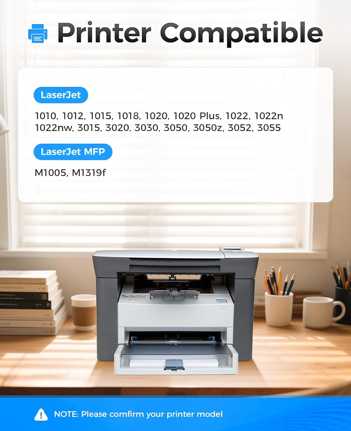 - Compatible Printers: Compatible with LaserJet 1010,1012,1015,1018,1020,1020 Plus,1022,1022n,1022nw,3015,3020,3030,3050,3050z,3052,3055 LaserJet MFP M1005,M1319f Series Printer.