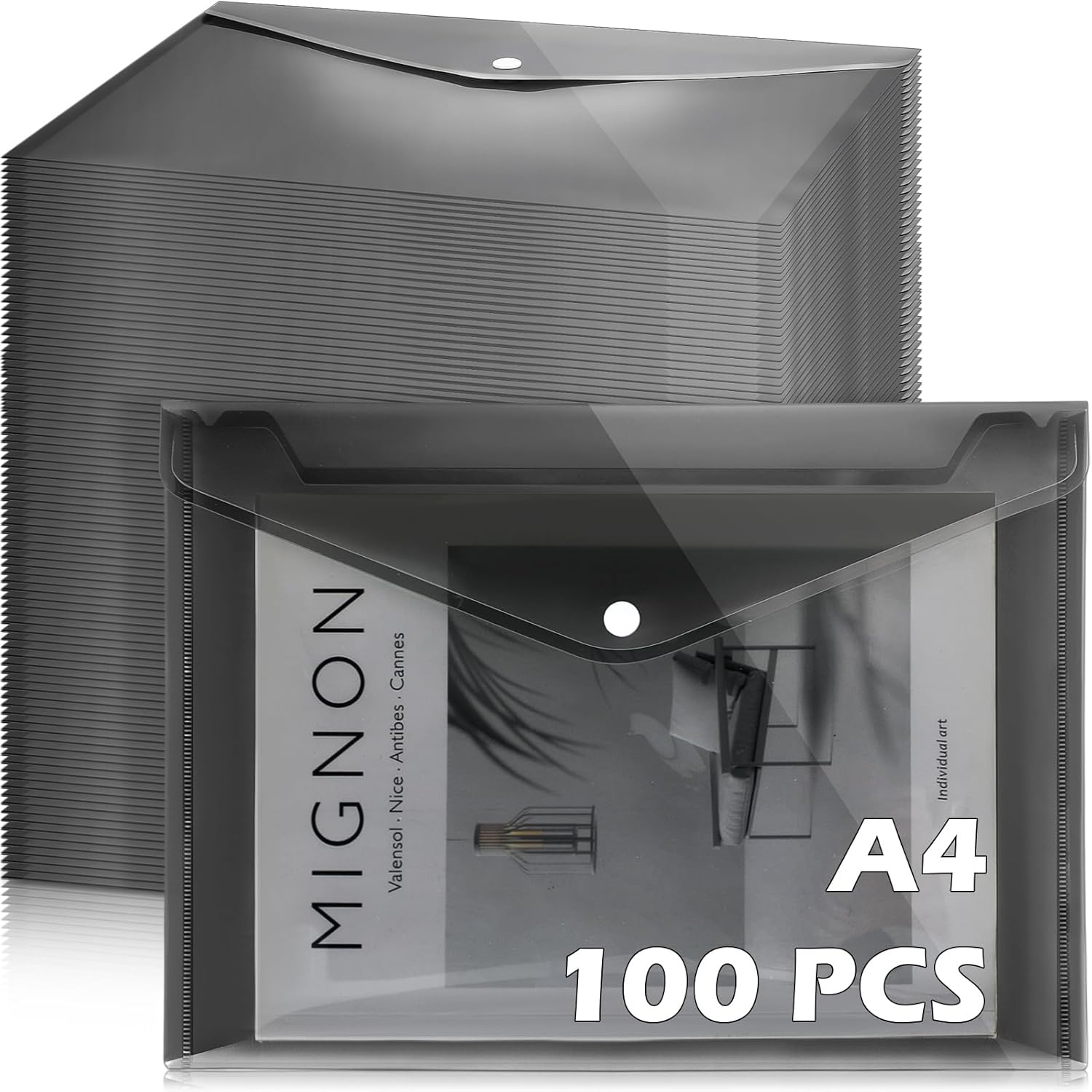 - 100 Envelope Folders: each package contains 100 dark gray clear document envelopes with snap button, sufficient quantity, enough to meet your daily bulk storage needs for documents, bills, receipts, etc., keep your documents tidy and safe