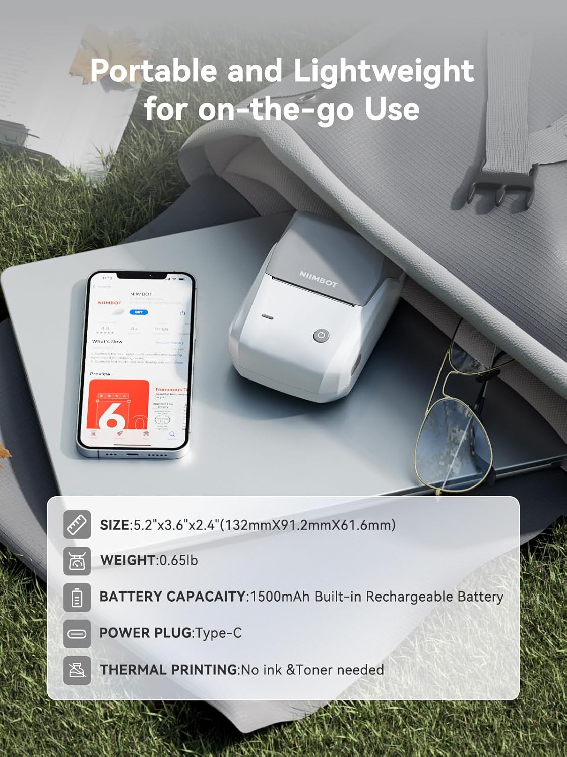 - 【Portable and Rechargeable】 The thermal label printer weighs 293g and can slide into your pocket, easy to be carried anywhere. Built-in durable and rechargeable 1500mAh battery standby time up to 100 days on a single charge.