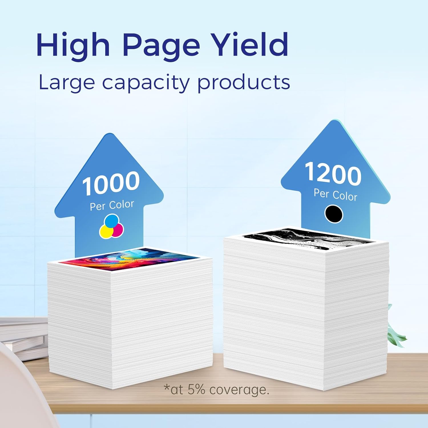 - HIGH PAGE YIELD: Each 910XL ink cartridges replacement for hp 910 xl black ink cartridge yields up to 1,200 pages, while each for hp 910xl color ink cartridge (cyan, magenta, yellow) provides up to 1,000 pages at 5% coverage on A4 paper for HP printers.