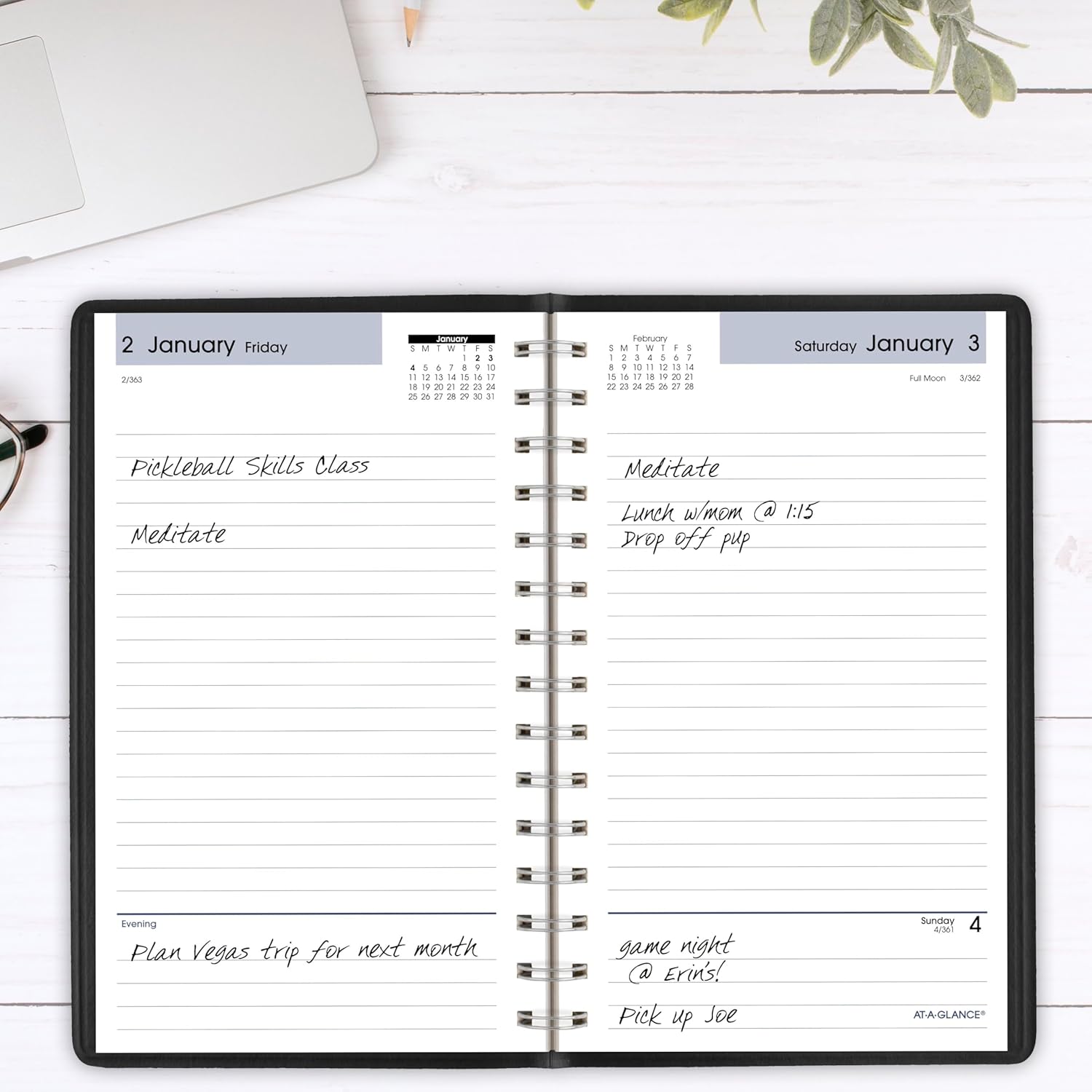 AT-A-GLANCE 2026 Planner, Daily, Open Scheduling, 5" x 8", Small, DayMinder, Black (SK460026)