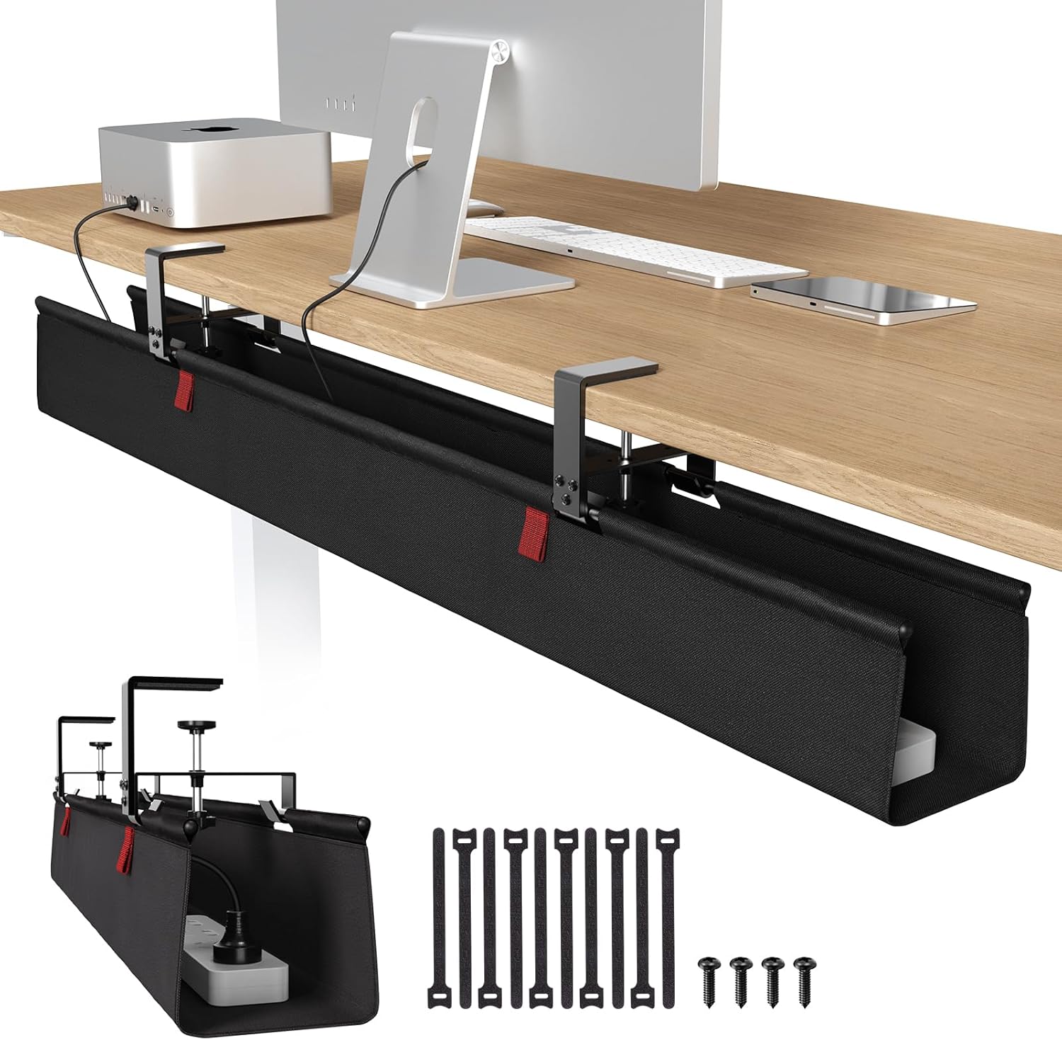 Univivi No Drill Under Desk Cable Management Tray, 48" Cord Organizer for Table, Clamp/Screw Mount Desk Cable Management, Premium Fabric Cable Management Tray for Office, Home (Extra Large)