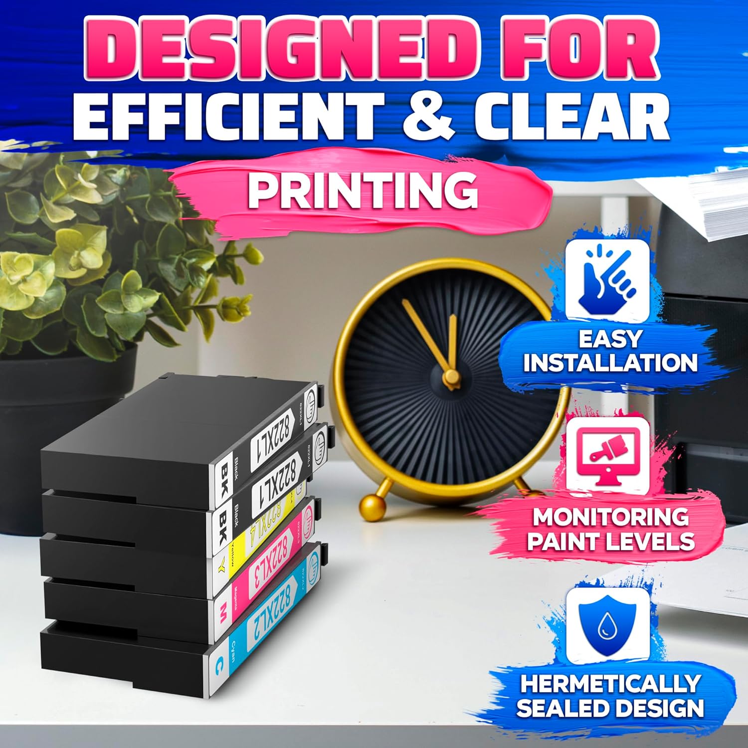 - Quality 822XL Black and Color Ink Printer Cartridges: The quality ink in these cartridges prevents clogging of the print head and reduces the risk of damage to the printer head for smoother prints
