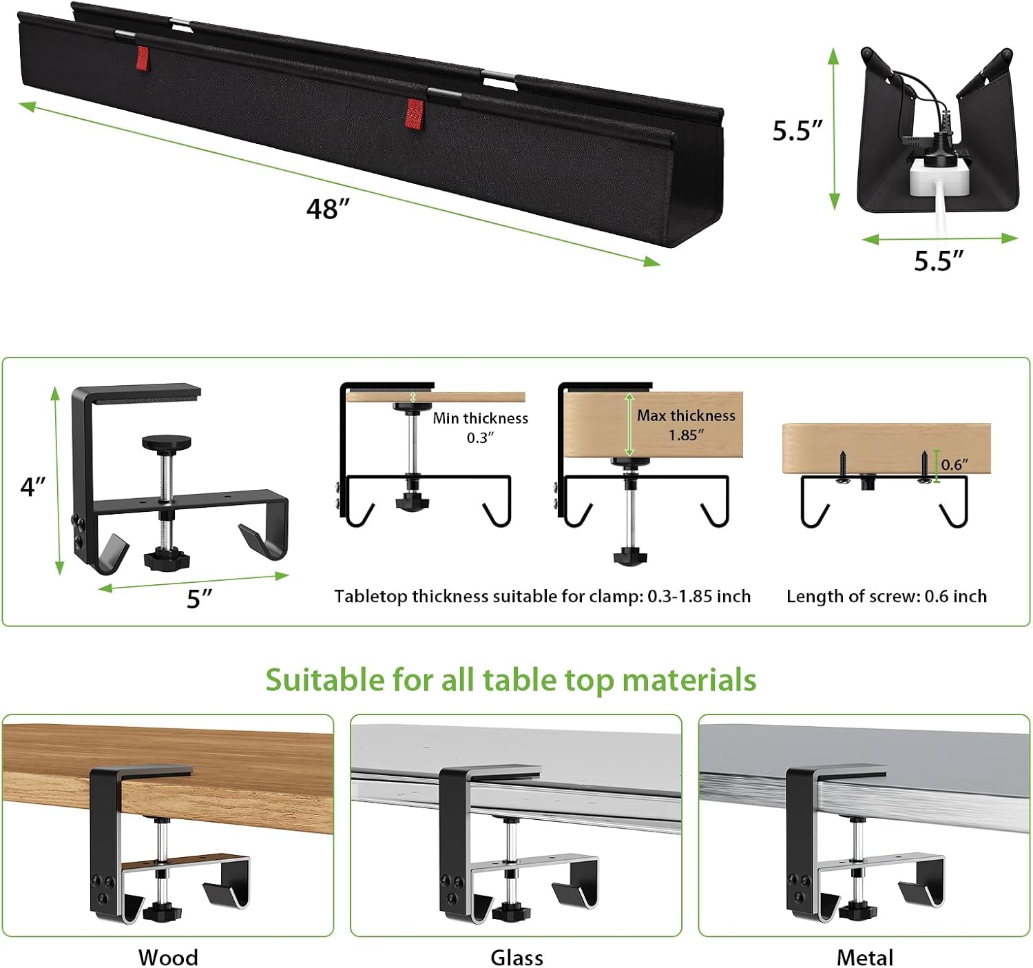 - [Easy Installation] - Installation is a breeze with the choice of clamp or screw mount support, ensuring a quick and convenient setup without the need for drilling. The sturdy construction of this desk wire management tray, along with 7 included fixed belt, makes it a durable and long-lasting solution for all your cord organization needs.