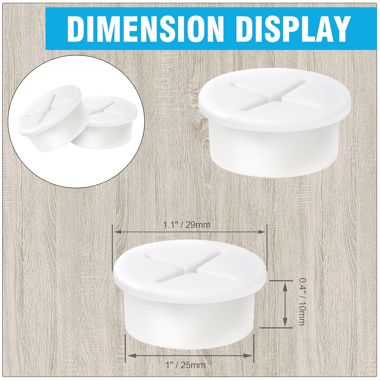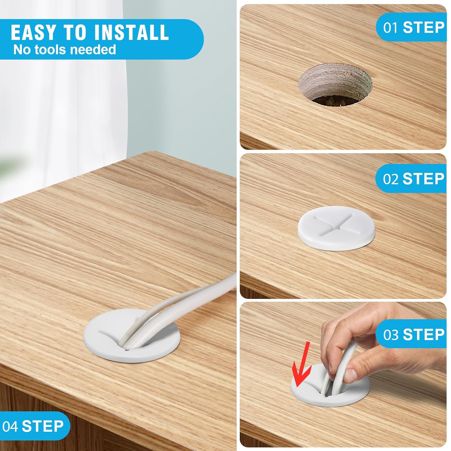 - DELIGHTS PACKAGE -- Your package includes 10 x 25mm desk grommets. Useful Tips: ① Make sure the hole's edges are smooth and free of splinters that could damage your cables or the grommet, ② Place the grommet into the hole. It should fit snugly, ③ Finally, route your cables through the desk grommet.