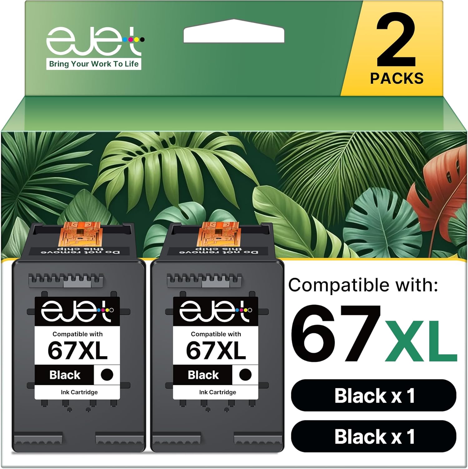 - Contents: Ejet 67XL remanufactured ink cartridge replacement for hp 67xl black ink cartridge high yield for hp ink 67 (2 Black)