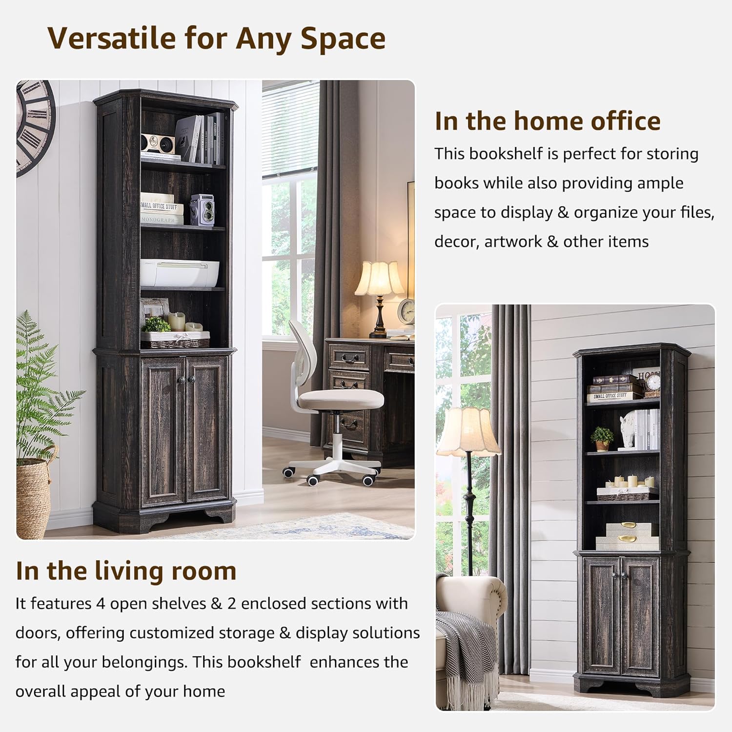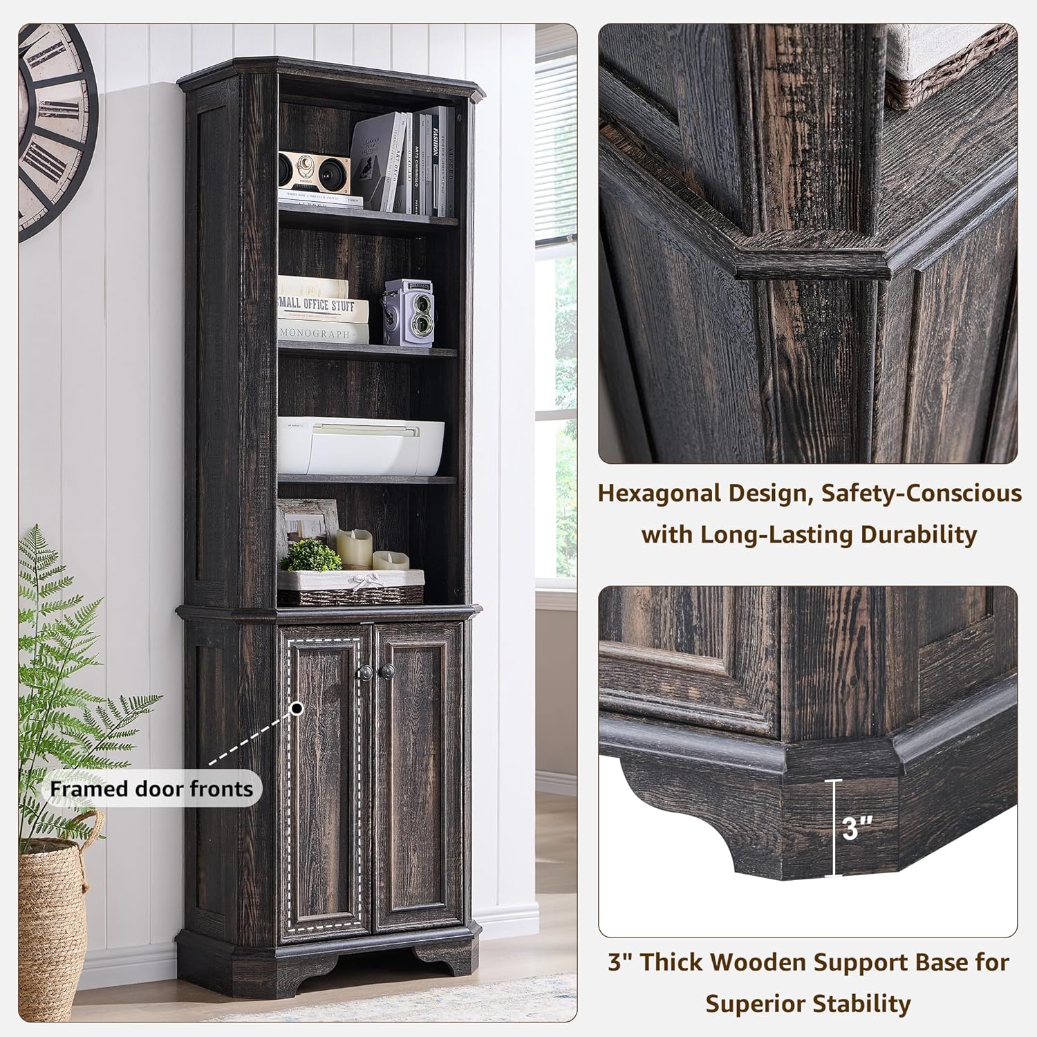 - Multipurpose Storage for Any Room: More than just a book shelf with storage, this versatile unit functions as a display case, or storage organizer. Use it in an office for books, in a living room for décor, in a kitchen for cookware, or even in a classroom or library as a dedicated book corner. The timeless farmhouse style seamlessly complements any setting