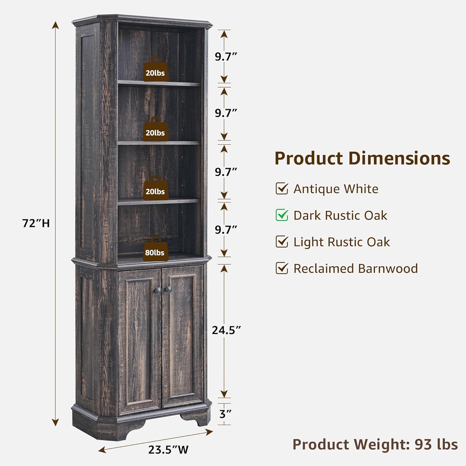 - Product Dimensions : 11.7"D x 23.5"W x 72"H