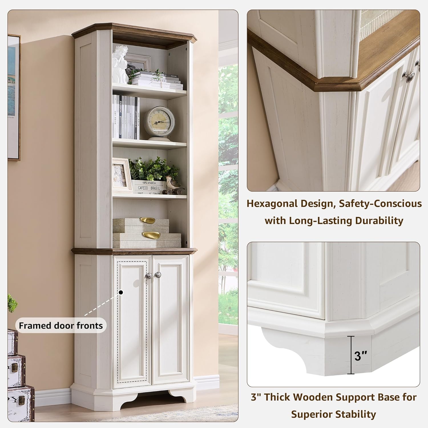 - Multipurpose Storage for Any Room: More than just a book shelf with storage, this versatile unit functions as a display case, or storage organizer. Use it in an office for books, in a living room for décor, in a kitchen for cookware, or even in a classroom or library as a dedicated book corner. The timeless farmhouse style seamlessly complements any setting