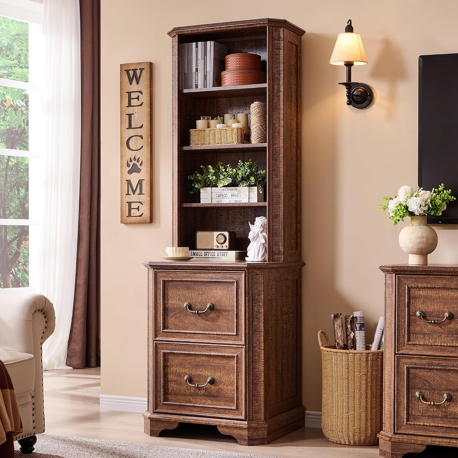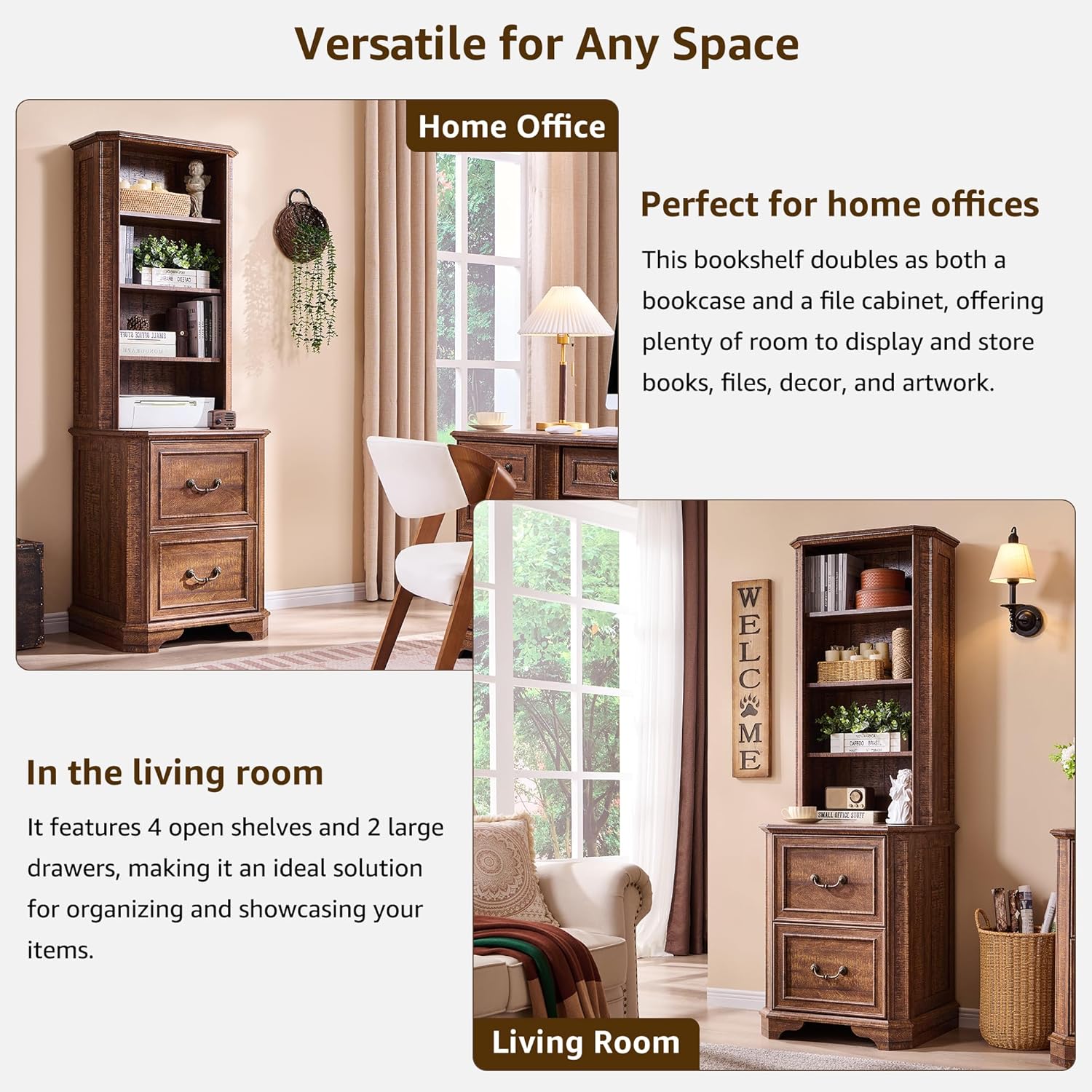 - Multipurpose Storage for Any Room: More than just a book shelf with storage, this versatile unit functions as a file cabinet, display case, or storage organizer. Use it in an office for documents, in a living room for dΓ©cor, in a kitchen for cookware, or even in a classroom or library as a dedicated book corner. The timeless farmhouse style seamlessly complements any setting