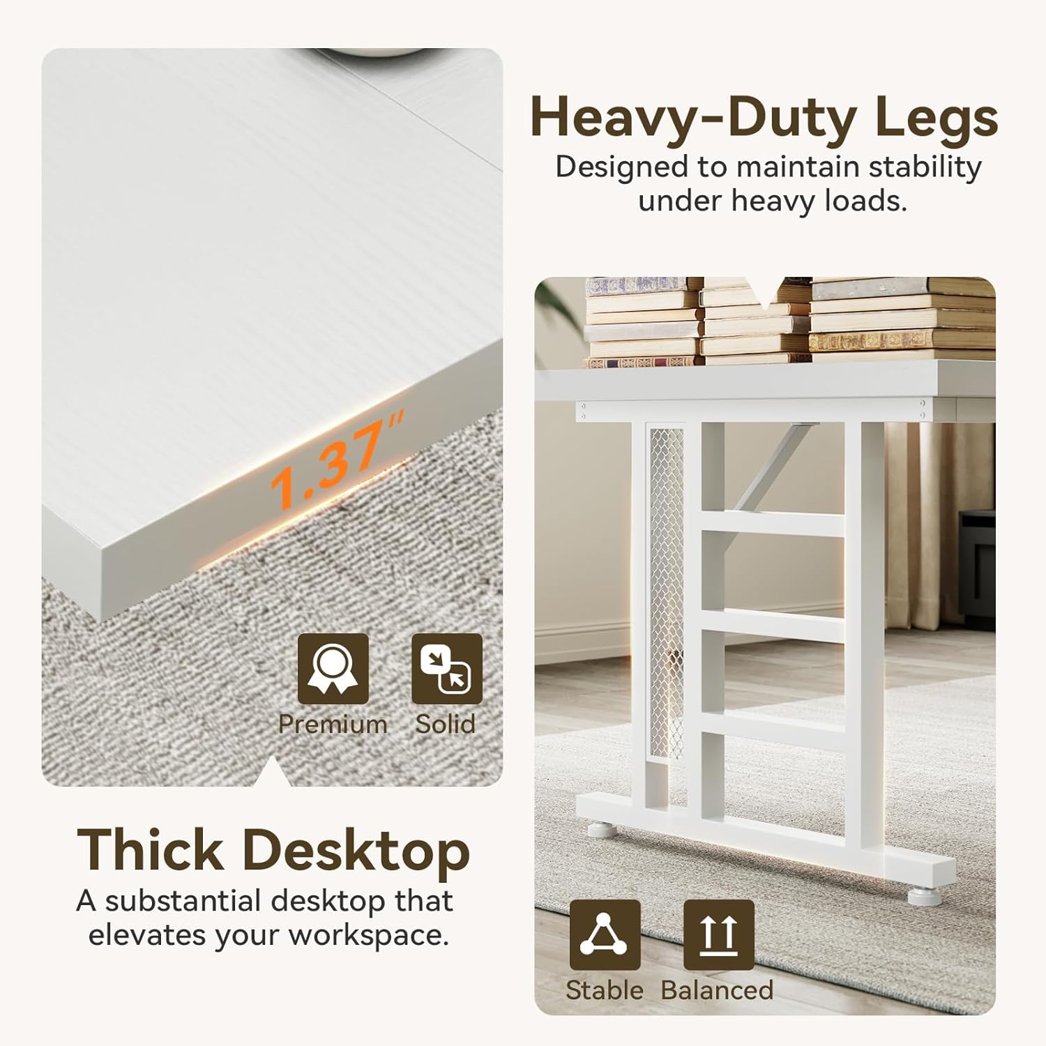 - 【Heavy-Duty, Sturdy Desk Frame for Durability】Built with a 1.37-inch thick engineered wood surface, this desk offers exceptional strength. The reinforced steel frame supports multiple monitors, printers, or heavy equipment. Adjustable leg pads keep your desk steady on uneven floors, ideal for home or writing desks.