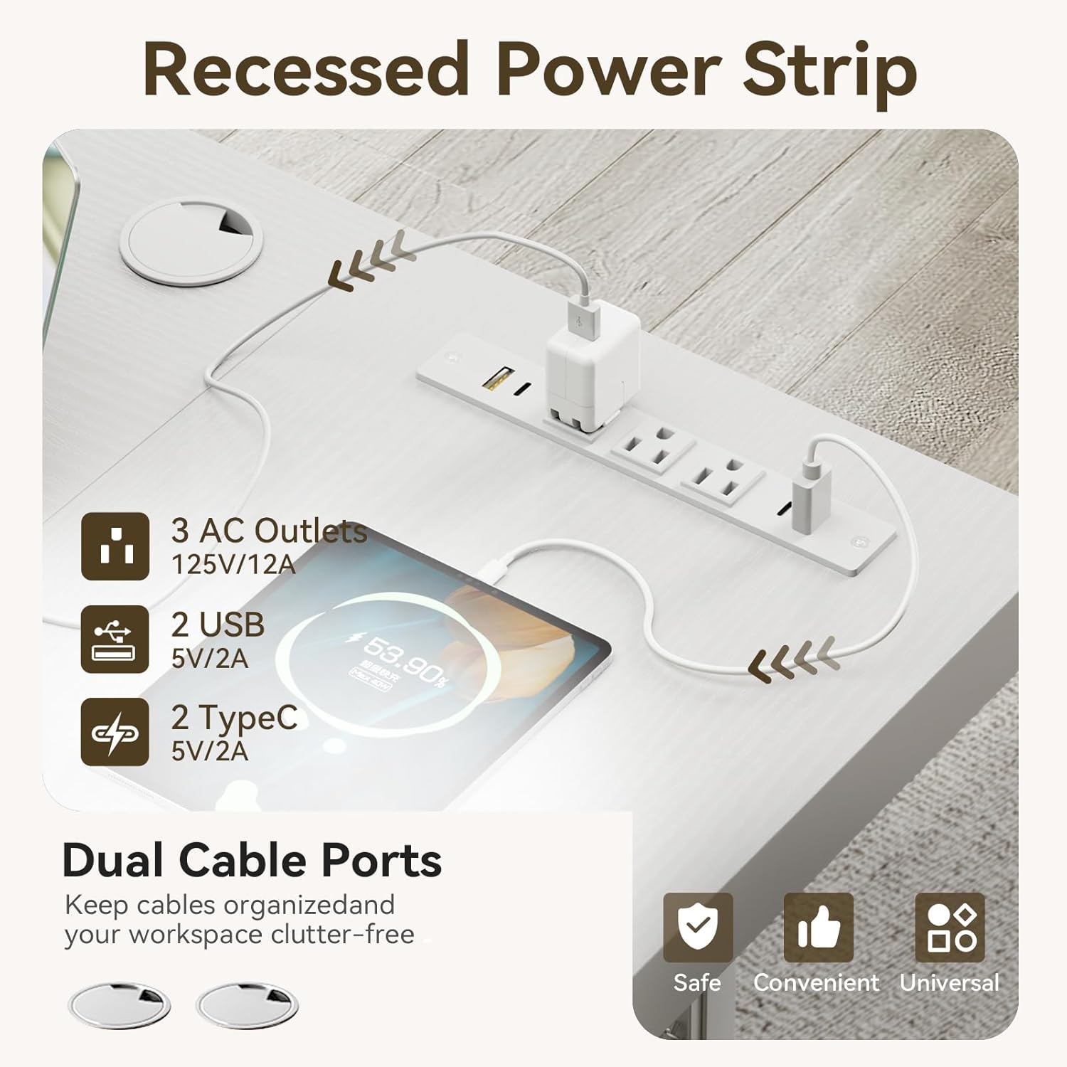 - 【Powerful Desk with Charging Ports】Upgrade your home office or study area with the Coleshome 71 inch large desk. Featuring 3 power outlets, 2 USB charging ports, and 2 Type-C charging ports, this office desk keeps your devices powered and ready. Say goodbye to tangled cords and limited outlets. Perfect for a modern desk, computer workstation, or executive desk.