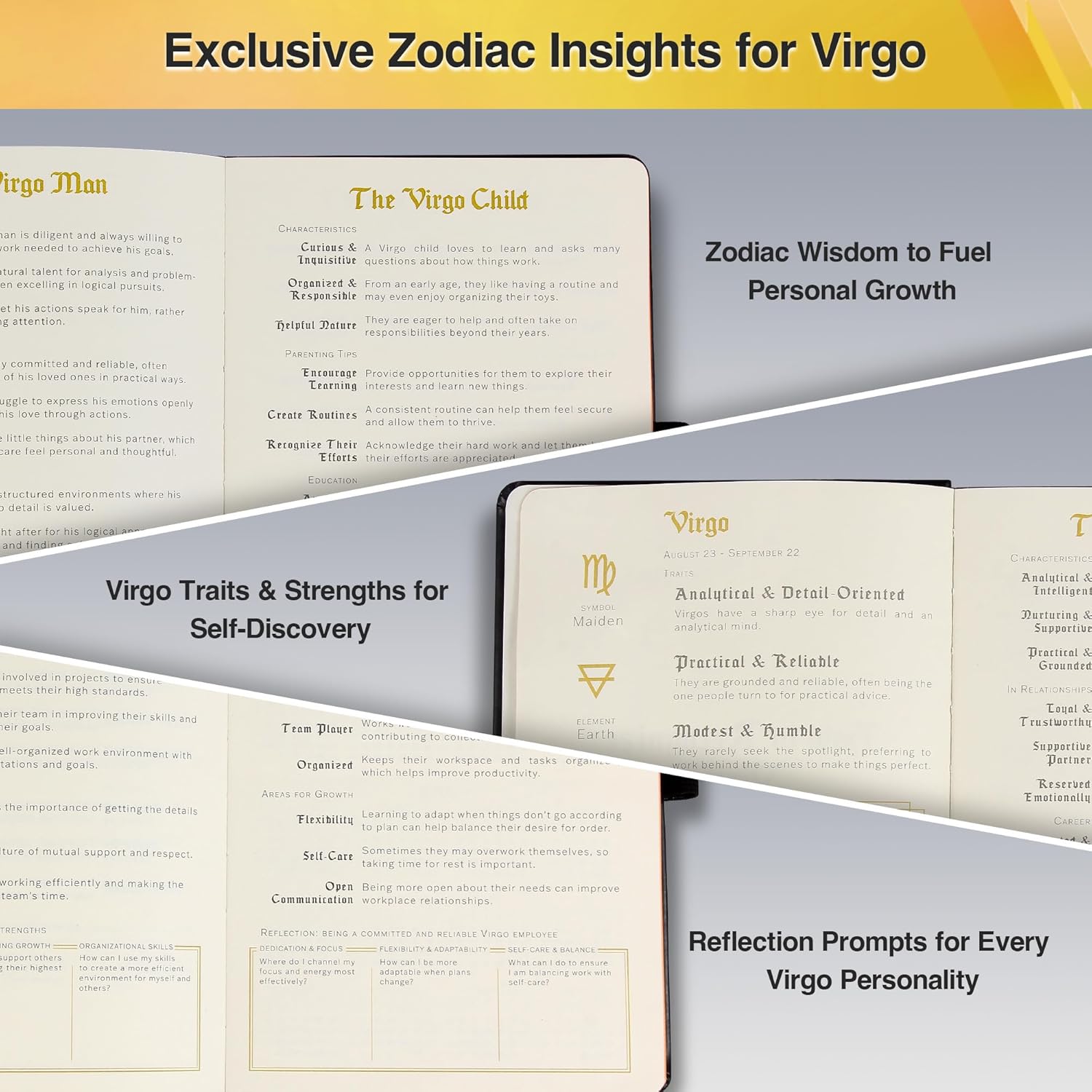 - Virgo-Inspired Zodiac Content: Dive into 6 pages of themed insights exploring Virgo traits, reflections, and personas—featuring the Virgo woman, man, child, boss, and employee.