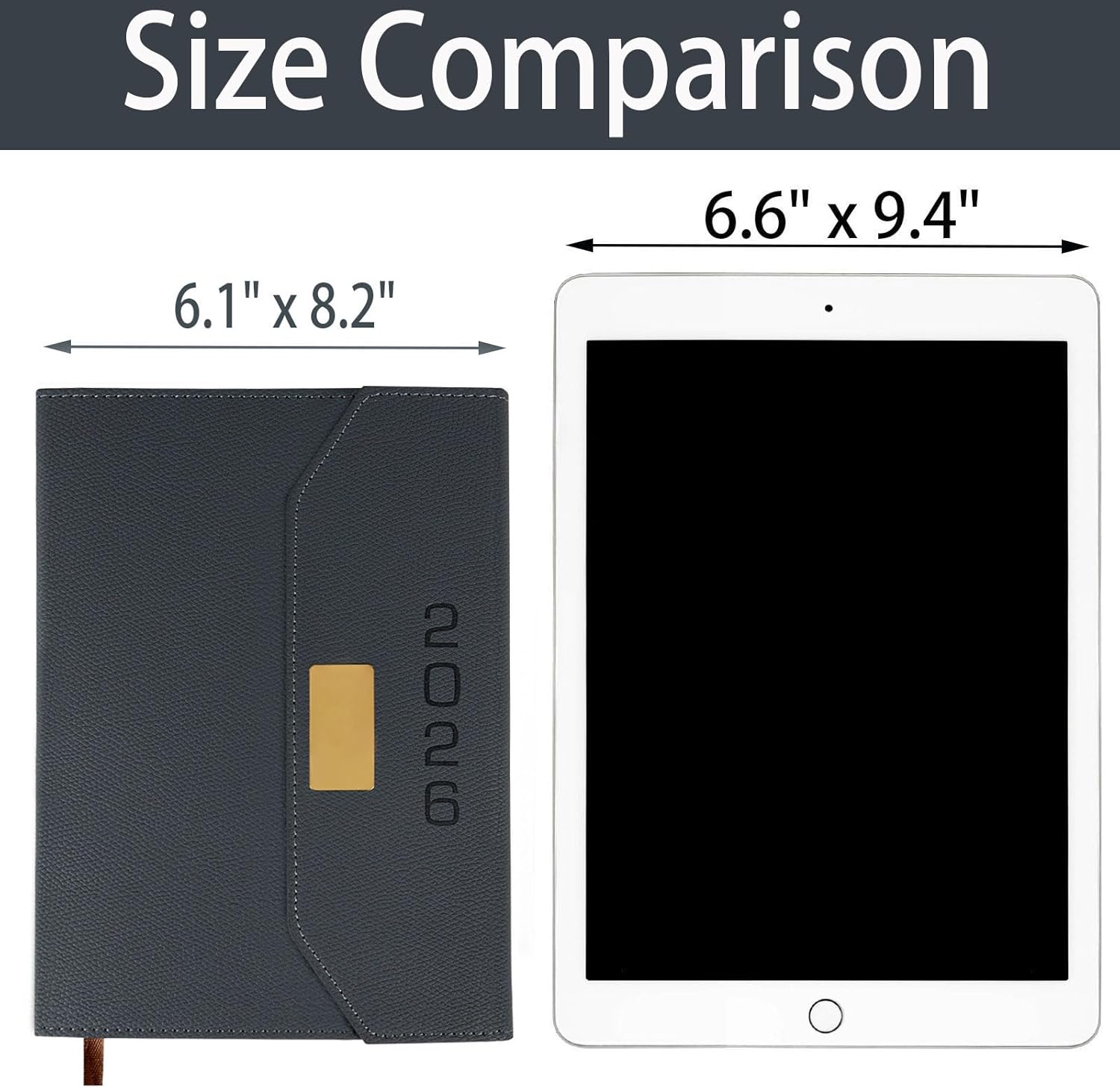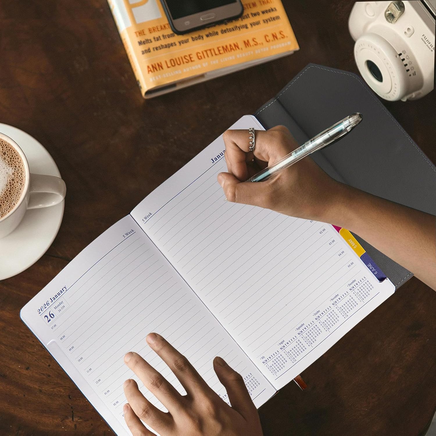 2026 Daily Monthly Planner - Calendar, January - December 2026, 100GSM Thick Paper, Leather Cover, Planner with Hourly Schedule,6.1" x 8.2", Daily Inside Page - Monthly Inside Page, Pen Holder, Bookmarks (Dark Gray)