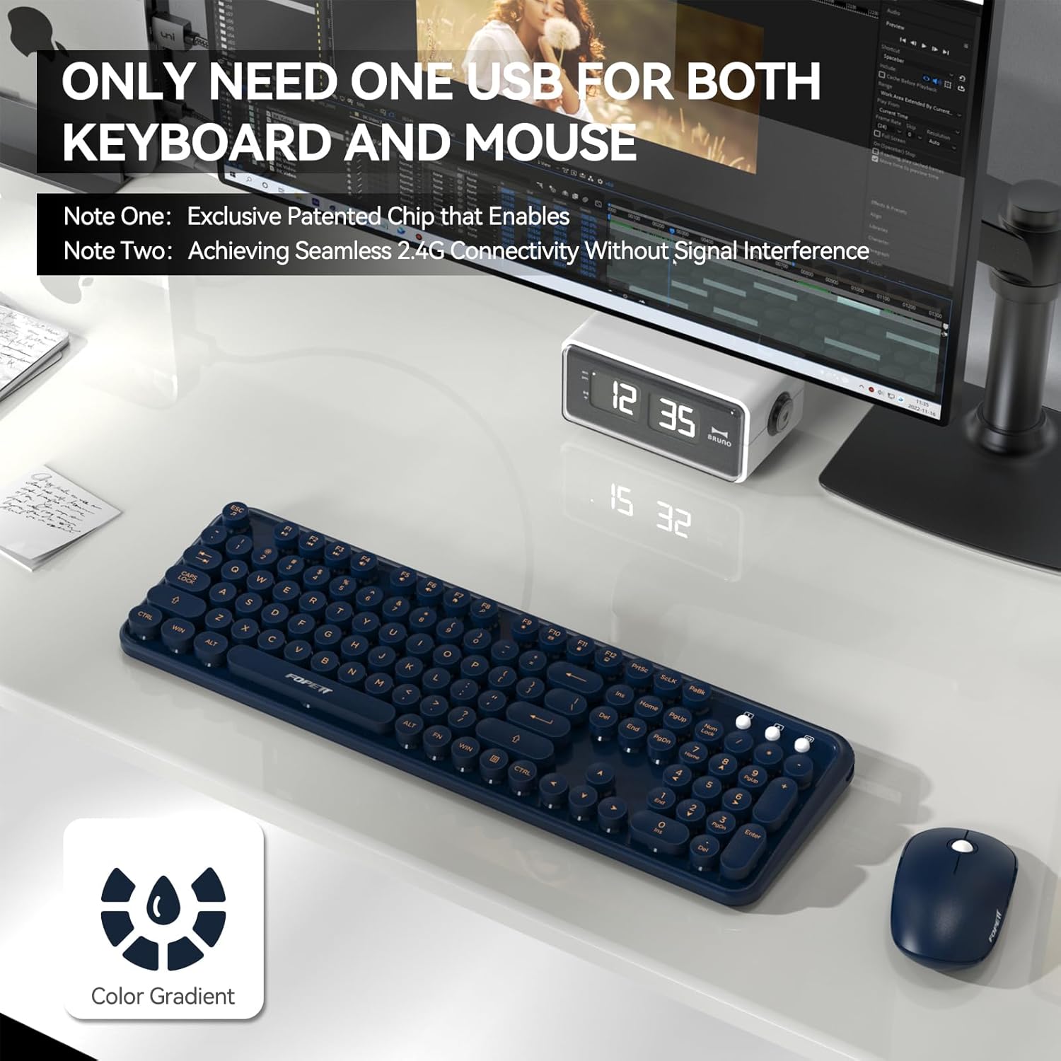 - A fusion of retro style and modern design: The inspiration of these cute rounded keys come from vintage typewriters offering you visual enjoyment and retro feeling to type. The mini Optical mouse is with modern ergonomic design,DPI adjustable(800-1200-1600).The combo will bring you a nostalgic feeling with the eye-catching retro aesthetic.