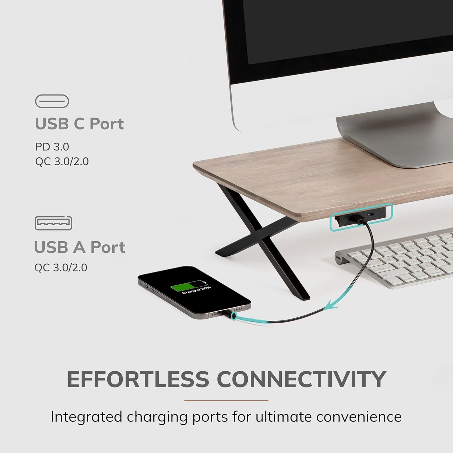- Premium Wood Finish: Our wood monitor stand, designed for elegance, complements any decor. As a desk monitor riser, it combines functionality with aesthetic appeal, seamlessly integrating into your workspace as a desktop monitor stand.