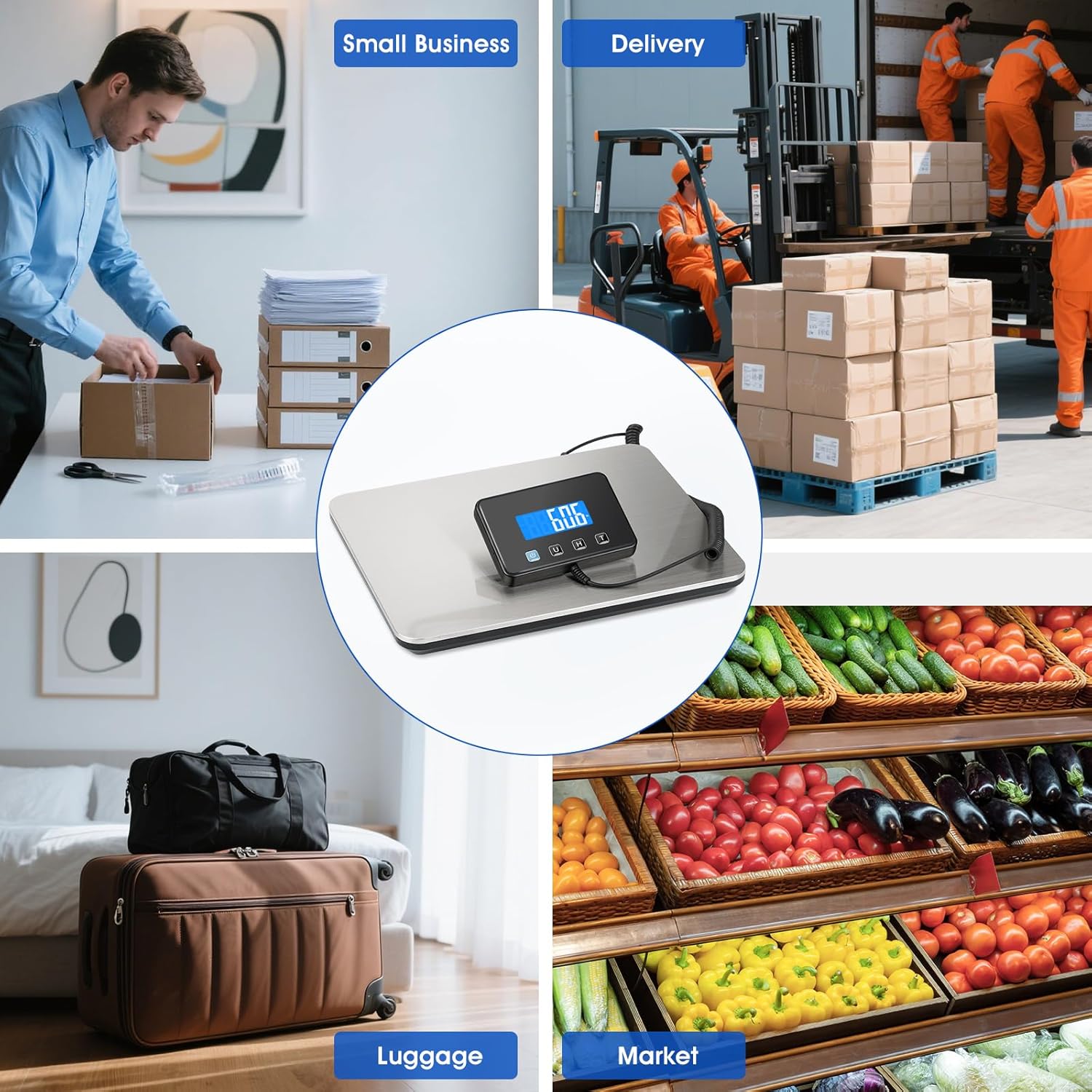 - Durable Material: It is equipped with a stainless steel platform, sturdy and durable, so the digital shipping scale can withstand heavy weight, suitable for post office, or commercial use, warehouse, small business, also good for home. The polished, rust-proof surface is easy to clean and maintain. In addition, it also contains 4 non-slip suport, provide excellent cushioning and protection.